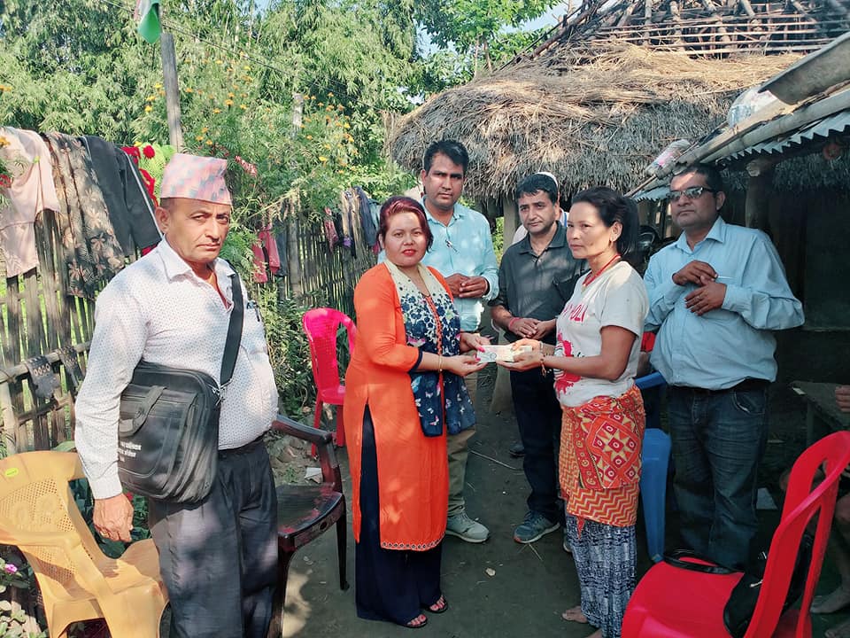 आगलागी पीडित राजवशिको घरमै पुगेर नगद १५ हजार राहत स्वरूप नगरपालिकाले दिएको थियो । राहत दिँदै नगरपालिकाकी उप प्रमुख ढाका कुमारी पराजुलीले आपत् बिपतमा परेको नगरवासीहरूलाई तत्काल राहत उपलब्ध गराउने बताइन ।