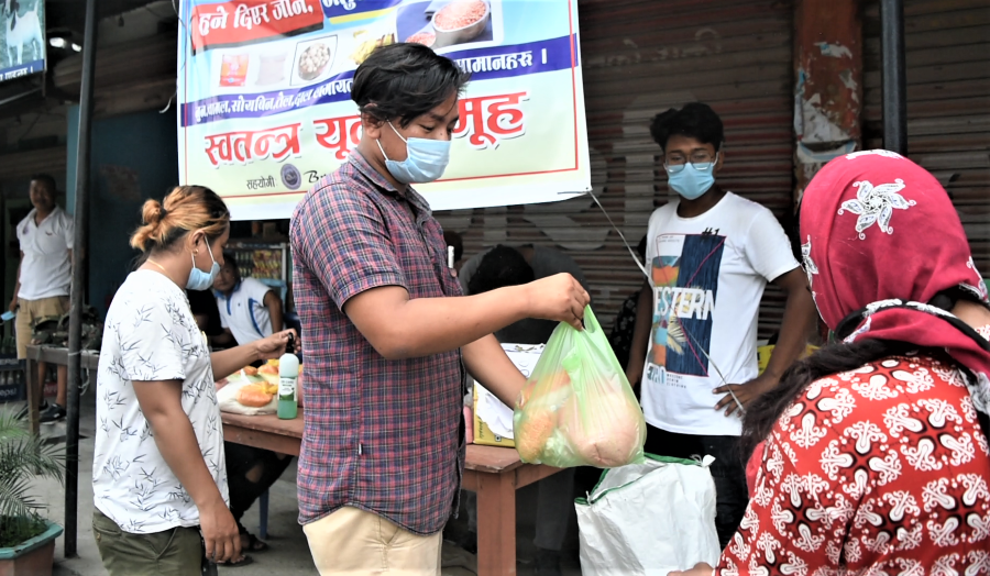 मोरङ, १७ भदौ । सुन्दरहरैचामा स्वतन्त्र युवा समूहले सञ्चालन गरेको फुट बैँकद्वारा ६० परिवार भन्दा बढीलाई खाद्यान्न सामाग्री वितरण गरेका छन् । विपन्न परिवारका लागि खाद्यान्न सामाग्री प्रदान गर्ने उद्देश्यले सञ्चालन गरेको फुट बैँकद्वारा ३ दिनमा ६० परिवारलाई युवाहरूले राहत वितरण गरेका हुन ।