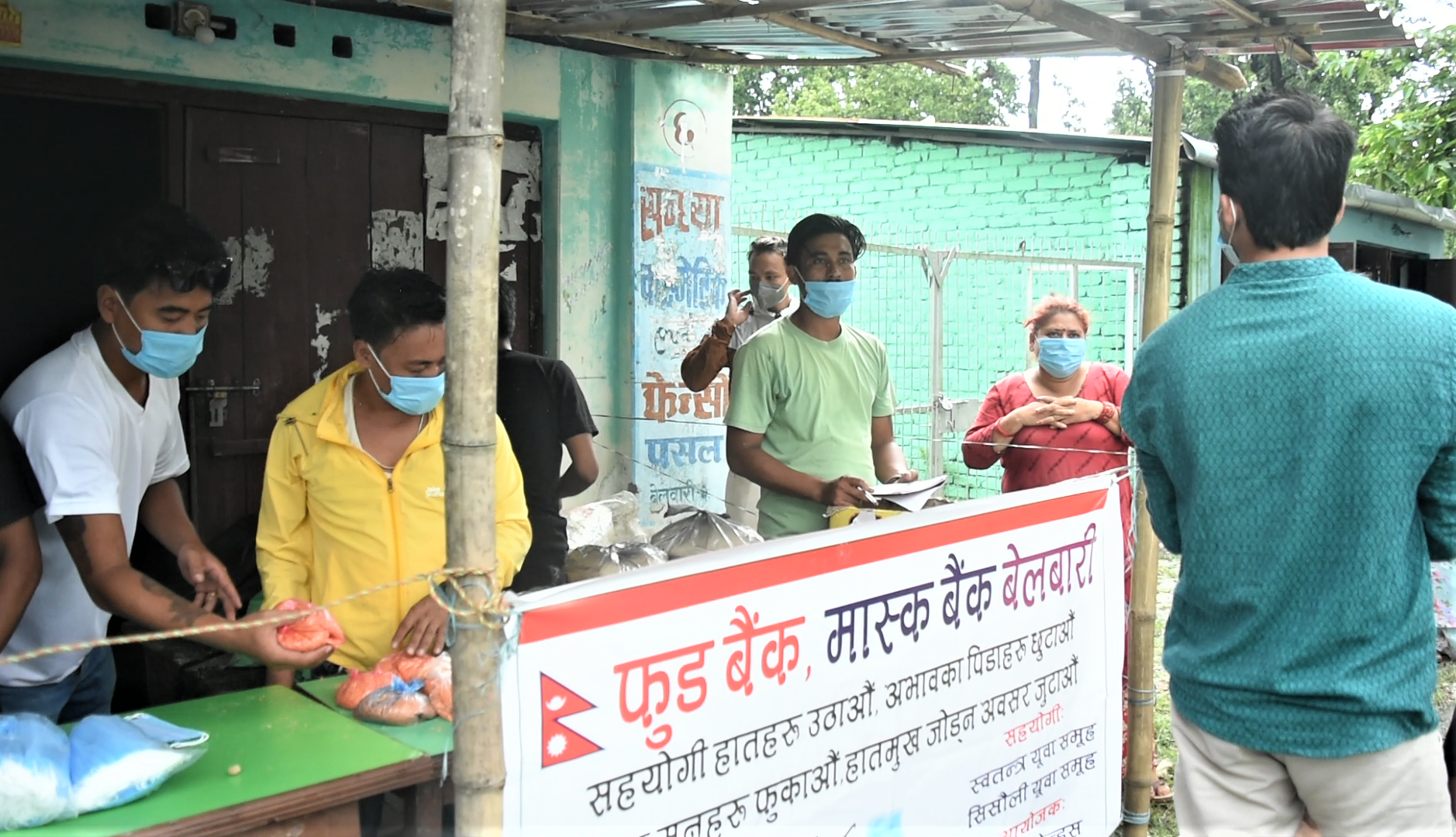 अति विपन्न परिवारको लागि खाद्यान्न सामाग्री तथा मास्क वितरण गर्ने उद्देश्यले फुड बैँक तथा मास्क बैँक सञ्चालन गरेका हुन । बेलबारी १ स्थित दुर्गा मन्दिरमा भएको कार्यक्रमको पहिलो दिन ६५ परिवारलाई राहत वितरण गरेको संयोजक रोमन राईले जनाएका छन् ।