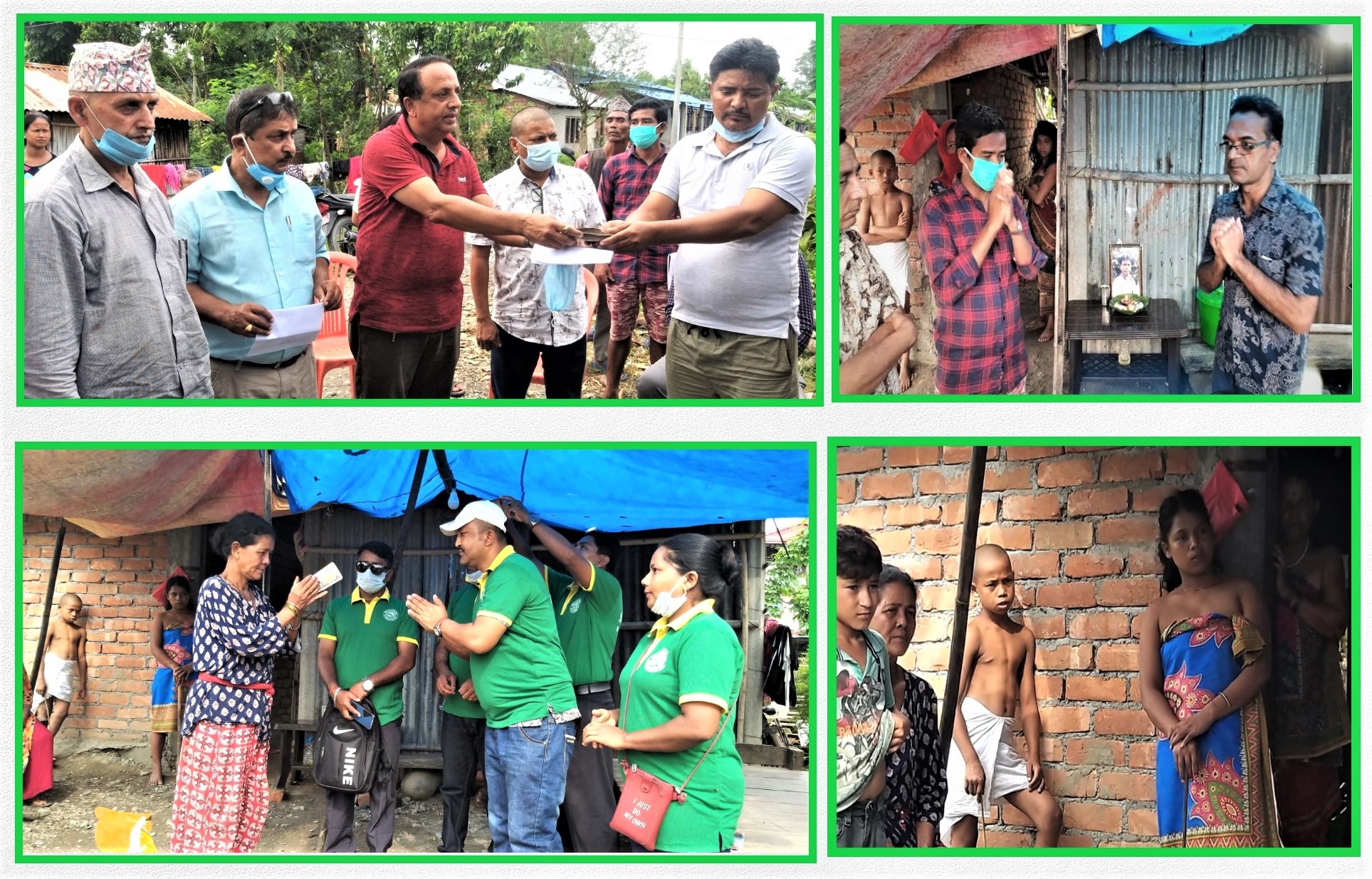 सोमबार निर्माण व्यवसायी संङ्घ मोरङको एक टोली विराटनगरबाट आएर अति गरिब दर्जीको परिवारलाई रु.८४ हजार ५ सयका साथमा आवश्यक खाद्य सामग्री चामल राहत स्वरूप हस्तान्तरण गरिएको थियो ।