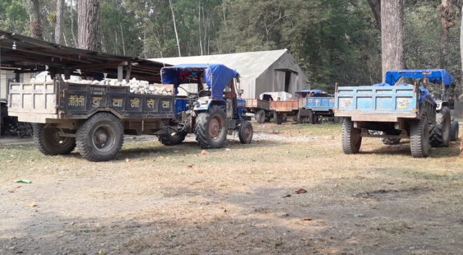 जातेबाट निर्माण सामाग्री लिएर दक्षिण पथरी आएको को २ त ८८५, को २ त ८६७०, को २ त ७४६२, को २ त ७८३८, को २ त १४८, को २ त ४८२६, को १ त ५२४६, को १ त ८४६६, मे १ त ५९३६ र मे १ त ७०२६ नम्बरको ट्याक्टर कार्बाहीमा परेको हो ।