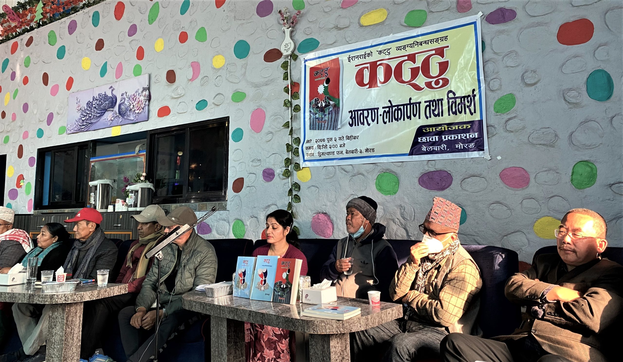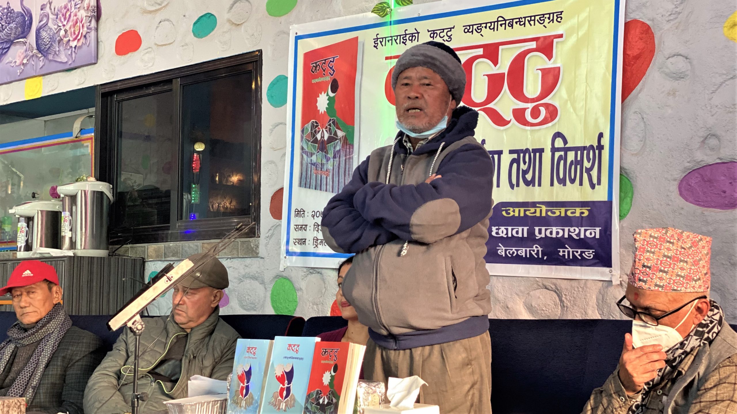 बेलबारी, ३ पुस । ईरानराईको व्याङ्ग्यनिबन्धसङ्ग्रह ‘कट्टु’ को तेस्रो संस्करणको आवरण लोकार्पण भएको छ । छावा प्रकाशन बेलबारीको आयोजनामा बेलबारी ३ स्थित ड्रिमल्याण्ड फनमा आवरण लोकार्पण तथा विमर्श कार्यक्रम बिहीबार सम्पन्न भएको हो ।