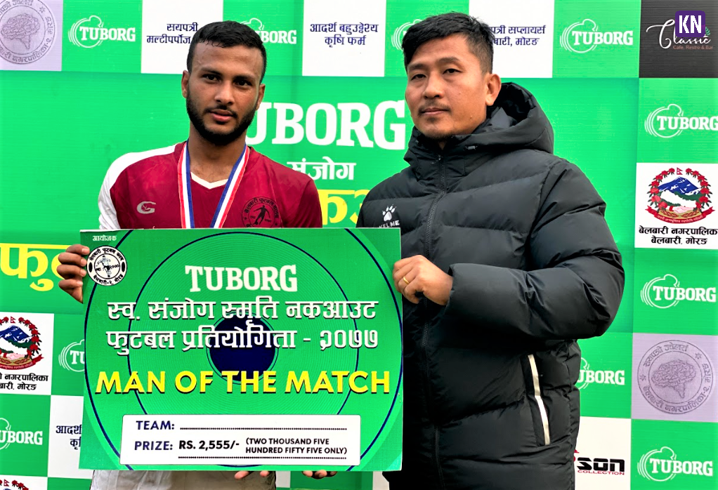 खेलको म्यान अफ द म्याच बेलबारीका विवेक नै घोषित भएका छन् । विवेकले रु.२ हजार ५ सय ५५ रुपैयाँ नगद पुरस्कार प्राप्त गरेका छन् । आयोजकका अनुसार भोलि सोमबारको क्वाटर फाइनल खेल पथरी शनिश्चरे एफसी, पथरी र रारा एफसी, धनकुटा बिच हुने छ।