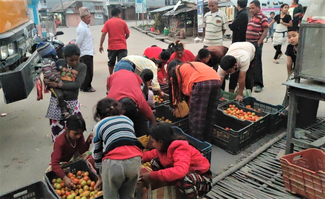 लेटाङ, २१ फागुन । मेहनतले आफूले उत्पादन गरेको टमाटरले बजार नपाउँदा किसानहरूले उत्पादन गरेको टमाटर निःशुल्क रूपमा वितरण गरेका छन् । बजार व्यवस्थापनमा सरकारले चासो नदिँदा किसानले उत्पादन गरेको टमाटर बारीमै कुहिने अवस्था आएपछि लेटाङ नगरपालिका वडा नं. ८ स्थित जाँते बजारमा किसानहरूले गाउँलेलाई बोलाएर आफूले उत्पादन गरेको टमाटर सित्तैमा वितरण गरेका हुन् ।