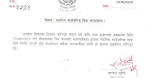 बेलबारी / मोरङको बेलबारी नगरपालिकाले प्रदेश नम्बर एकको अल्पसङ्ख्यक जातिका रुपकमा रहेको धिमाल जातिको श्रीजात जात्रि पर्वको अवसरमा सोमवार सार्वजनिक बिदा दिने भएका छन् ।