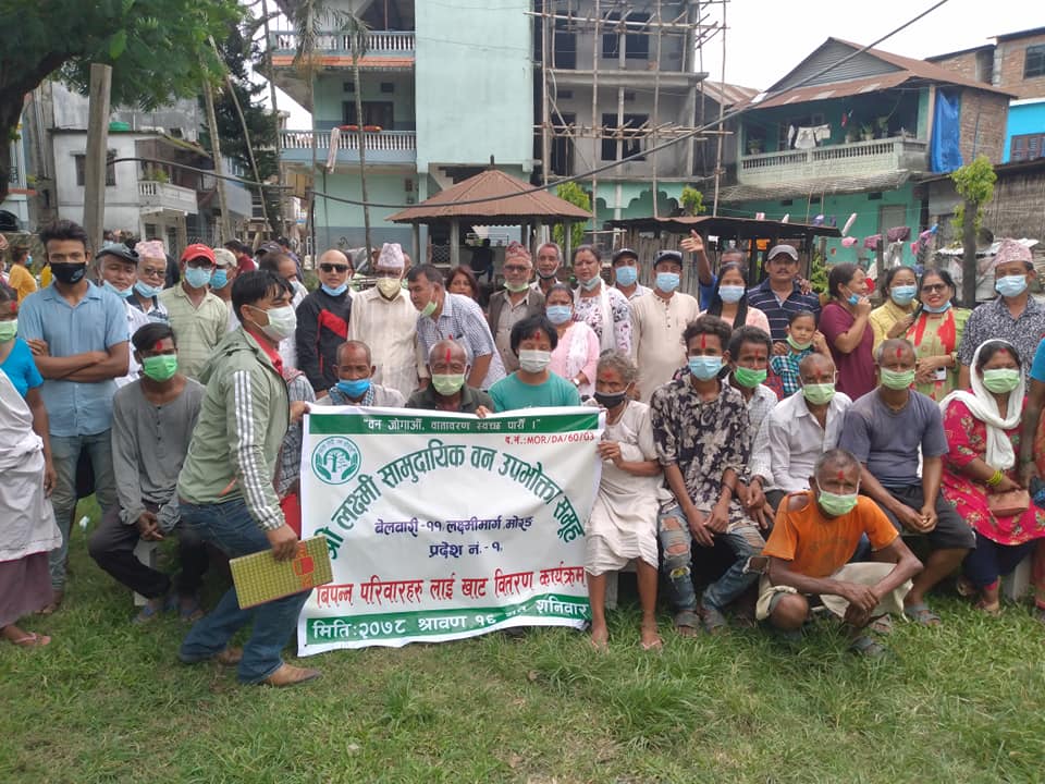 बेलबारी, १७ श्रावण । मोरङको बेलबारी–११ मा रहेको लक्ष्मी सामुदायिक वनले खाट अभावमा भुइँमा सुत्न बाध्य गरिब तथा विपन्न उपभोक्ताहरूलाई खाट वितरण गरेको छ । सामुदायिक वनले आफ्नो वार्षिक कार्यक्रमअन्तर्गत गरिब तथा विपन्न उपभोक्ताहरूलाई खाट वितरण गरेको उपभोक्ता समूहका अध्यक्ष सुजय गौतमले बताएका छन् ।