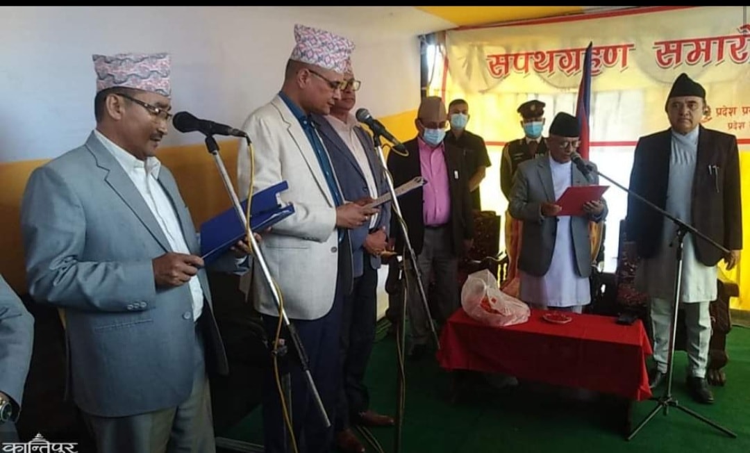 नवनियुक्त मन्त्रीद्वयलाई प्रदेश प्रमुख सोमनाथ अधिकारी प्यासीले आजै पद तथा गोपनियताको शपथ खुवाएका छन् ।
