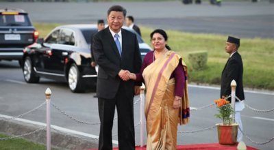 काठमाडौँ, २५ असोज । नेपाल भ्रमणमा आएका चिनियाँ राष्ट्रपति सी चिनफिङलाई शनिवार अपराह्न राष्ट्रपति विद्यादेवी भण्डारीले त्रिभुवन विमानस्थलमा स्वागत गरेकी छन् ।