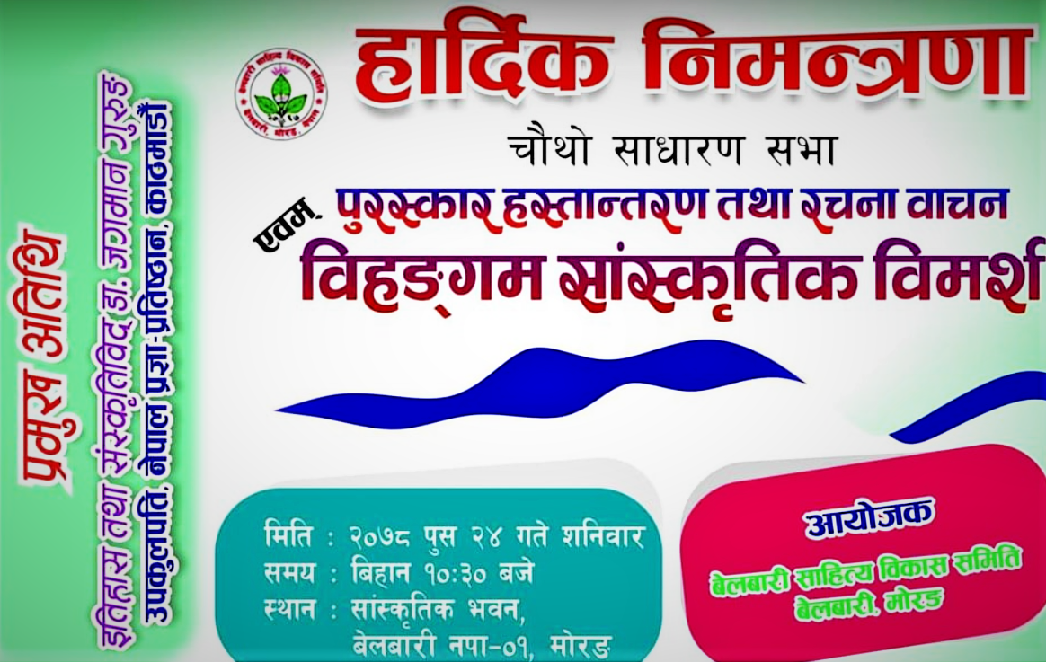 सो अवसरमा संस्थाको साधारण सभाका अतिरिक्त रचना वाचनसमेत हुने आयोजकले जनाकारी दिएको छ ।