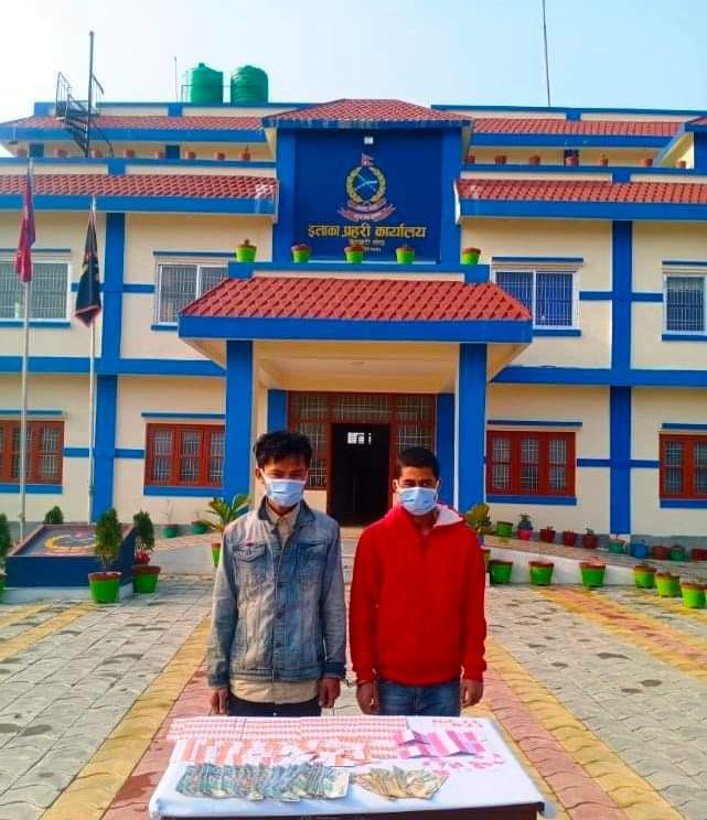 इलाका प्रहरी कार्यालय बेलबारीबाट खटिएको प्रहरी टोलीले अन्दाजी रू ४९ हजार ८ सय बराबरको NCELL को रिचार्ज कार्ड र नगद रू २५ हजार नगदसहित उनीहरूलाई पक्राउ गरेको हो ।