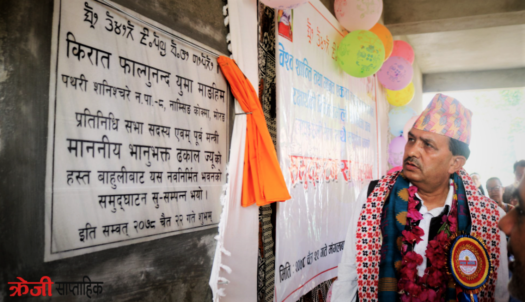 मोरङ, २२ चैत । मोरङको पथरीशनिश्चरेमा किरात भाषा लिपी पाठशाला तथा सामुदायिक भवनको उद्घाटन भएको छ । पथरीशनिश्चरे ८ शुक्रबारेमा निर्मित भवनको मोरङ क्षेत्र नं ३ का सांसद एवम् पूर्व मन्त्री भानुभक्त ढकालले उद्घाटन गरेका हुन् ।