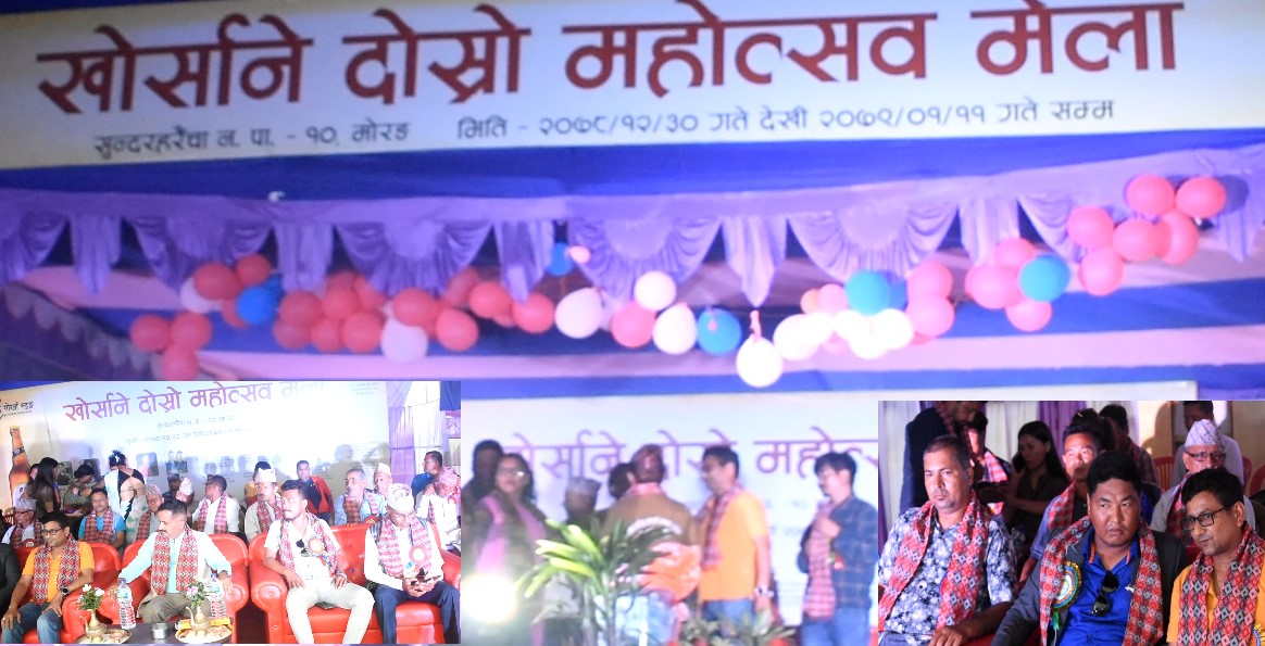 सुन्दरहरैँचा, ३० चैत । आफ्नो गाउँको प्रचार प्रसार गर्दै आन्तरिक पर्यटनको प्रवर्धन गर्ने अभिप्रायले सुन्दरहरैँचामा दोस्रो खोर्साने महोत्सव २०७८ को उद्घाटन भएको छ । आज (बुधवार) एक कार्यक्रमकाबिच सुन्दरहरैँचा नगरपालिकाका प्रमुख शिवप्रसाद ढकालले महोत्सवको उद्घाटन गरेका छन् ।