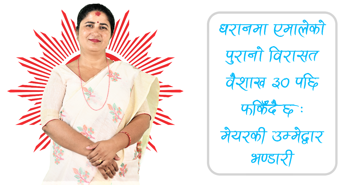 धरान, १५ वैशाख । पूर्वको सुन्दर पर्यटकीय सहर धरानको विकासको खाका कोर्दै समग्र धरानबासीको पक्षमा युवा जोस जाँगर र उत्साहकासाथ स्थानीय तहको चुनावी मैदानमा उत्रिएकी मञ्जु भण्डारी सुवेदी धराने जनताकालागि अपरिचित नाम होइन । उनलाई नेकपा एमालेले वैशाख ३० गते हुने स्थानीय तहको चुनावमा धरान उपमहानगरका लागि मेयरको प्रत्याशीमा उठाएको छ । नेकपा एमालेले देशका ११ वटा उपमहानगर मध्य ४० वर्ष उमेर नकटेकी एक मात्र महिला उम्मेद्वार पनि भण्डारी नै हुन् ।