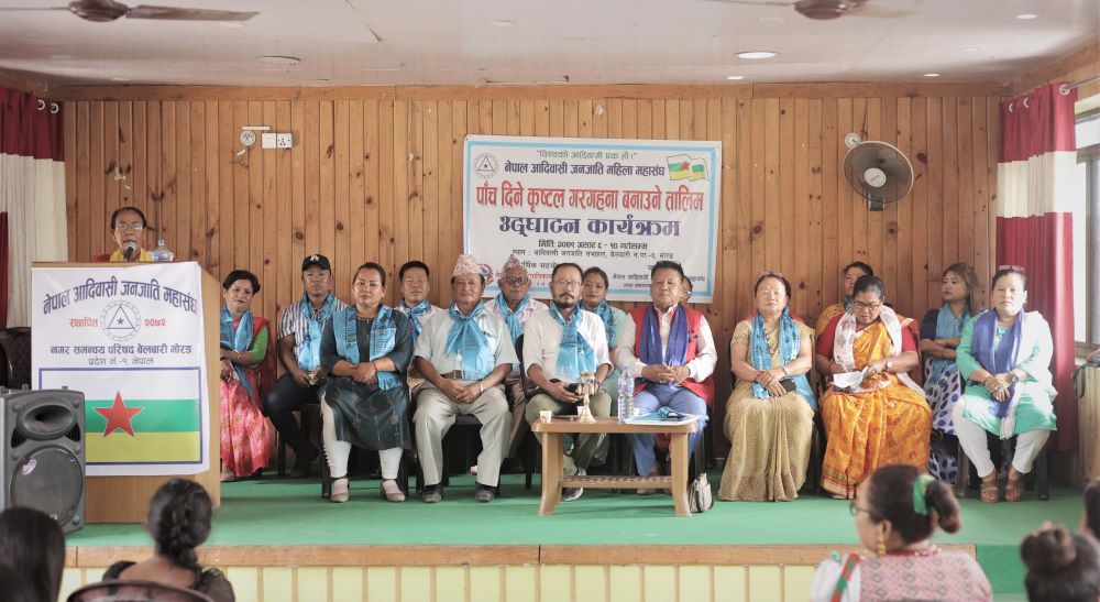 अध्यक्ष भगवती क्षेष्ठका अनुसार बेलबारीमा आदिवासी जनजाति महासंघमा सूचीकृत १८ वटा जातिमा महिला प्रतिनिधि हरूको सहभागितामा तालिम गरिएको हो । अध्यक्ष श्रेष्ठ साथै सचिव उषा तामाङले १० गते सम्म हुने तालिमले व्यावसायिक रूपमा प्रशिक्षार्थीहरू भावी दिनमा अगाडी बढ्ने आशा व्यक्त गरिन ।