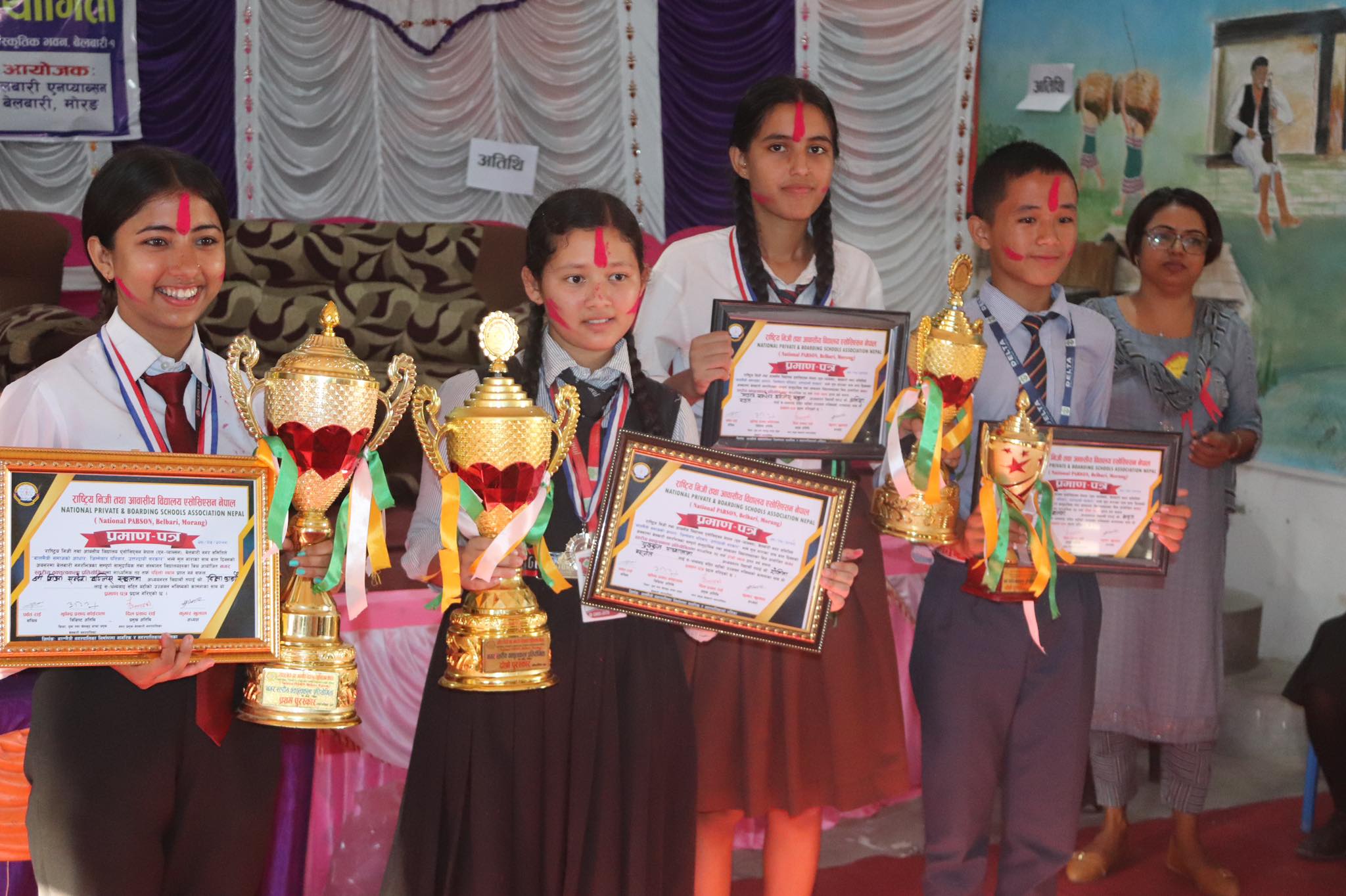 विजयी छात्र तथा छात्रालाई कार्यक्रमका अतिथिसमेत रहेका एन प्याब्सन मोरङ सदस्य नारायण ढकाल तथा गुरुकुल पाठशालाका प्रिन्सिपल तथा एन प्याब्सन बेलबारीका अध्यक्ष कुमार खुलालले वितरण गरेका थिए ।