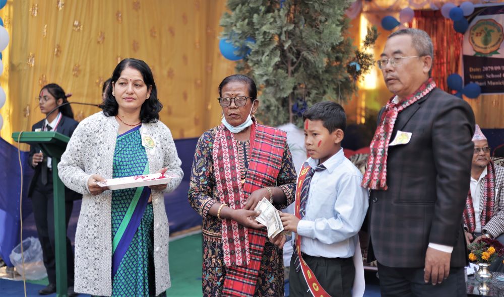 विद्यालयले कार्यालय सहयोगी दुर्गा राई र सहशिक्षिका अपेक्षा श्रेष्ठ सम्मान गरेको छ । दुवैलाई नगर प्रमुख राईले सम्मान गरेका छन् । अभिभावकहरूलाई पनि प्रशंसा पत्र प्रदान गरिएको थियो । विद्यालयद्वारा नवराज सुवेदी, तीर्थराज सिग्देल, बाबुराम खड्का र कृष्णबहादुर गुरुङलाई प्रशंसा पत्र प्रदान गरिएको थियो । साथै विभिन्न विद्यामा उत्कृष्ट विद्यार्थीहरू पुरस्कृत भएका थिए ।