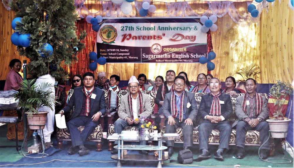 बेलबारी । सगरमाथा इङ्लिस स्कुलको २७ औँ वार्षिकोत्सव तथा अभिभावक दिवस सम्पन्न भएको छ । बेलबारी वडा नं.१ मा रहेको विद्यालयले आफ्नै प्राङ्गणमा शनिवार कार्यक्रम सम्पन्न गरेको छ ।