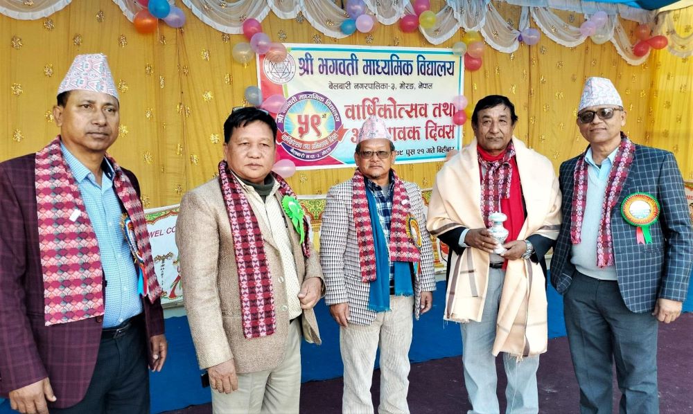 बेलबारी । बेलबारी ३ मा रहेको भगवती माविको वार्षिक उत्सव तथा अभिभावक दिवस सम्पन्न भएको छ । बिहीबार बेलबारी नगरपालिकाका प्रमुख दिलप्रसाद राईले विद्यालयको ५९ औँ वार्षिक उत्सव तथा अभिभावक दिवसको उद्घाटन गरेका हुन।