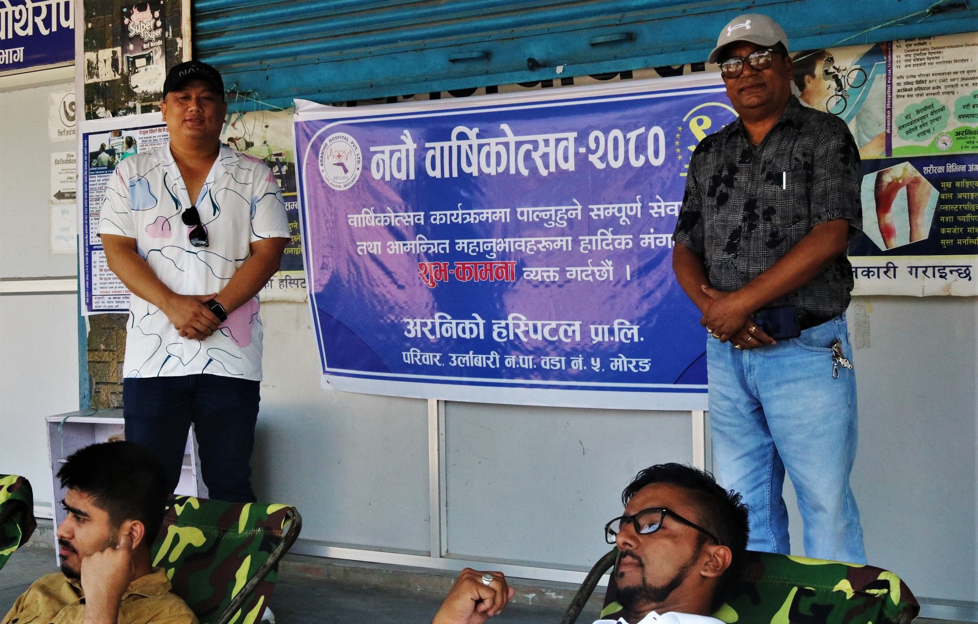 रेडक्रस उर्लाबारीको प्राविधिक सहयोग रहेको रक्तदानमार्फत ४३ प्रिन्ट रगत सङ्कलन गरिएको थियो । कार्यक्रममा हस्पिटलका अध्यक्ष लोलिम पोमु लिम्बूले बिरामीहरूलाई अत्याधुनिक सेवा र सुविधा प्रदान गर्न अरनिको हस्पिटल सफल हुनुमा कार्यरत चिकित्सक एवं कर्मचारीहरूको महत्त्वपूर्ण भूमिका रहेको बताउनुभयो । उहाँले निकट दिनमै अरनिको हस्पिटलले ६ शैय्याको आइसियु सेवा र सिटी स्क्यान मेसिनबाट पूर्णकालीन सेना सुरु हुने जानकारी दिनुभयो । अरनिको हस्पिटलले अधिकांश विधामा फुलटाइम चिकित्सकसहित सेवाको दायरा बढाउँदै लगेको पनि अध्यक्ष लिम्बूले उल्लेख गर्नुभयो ।