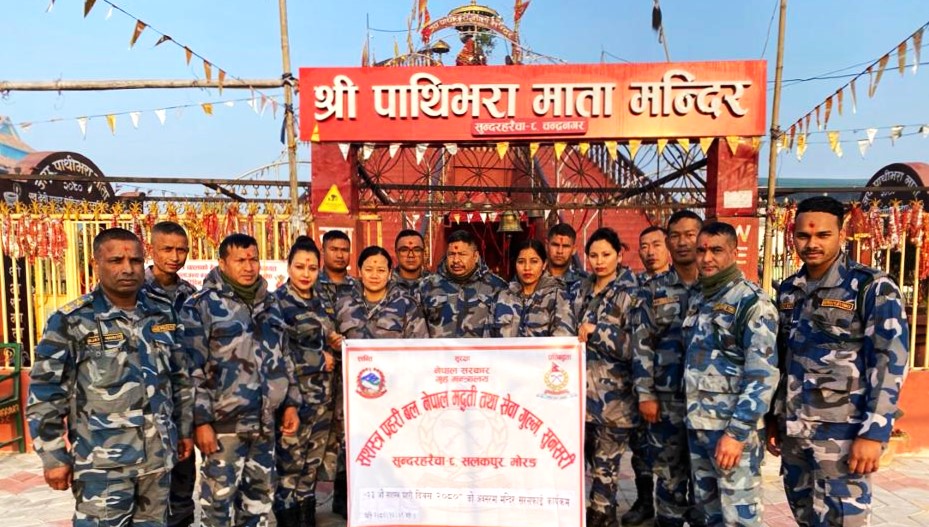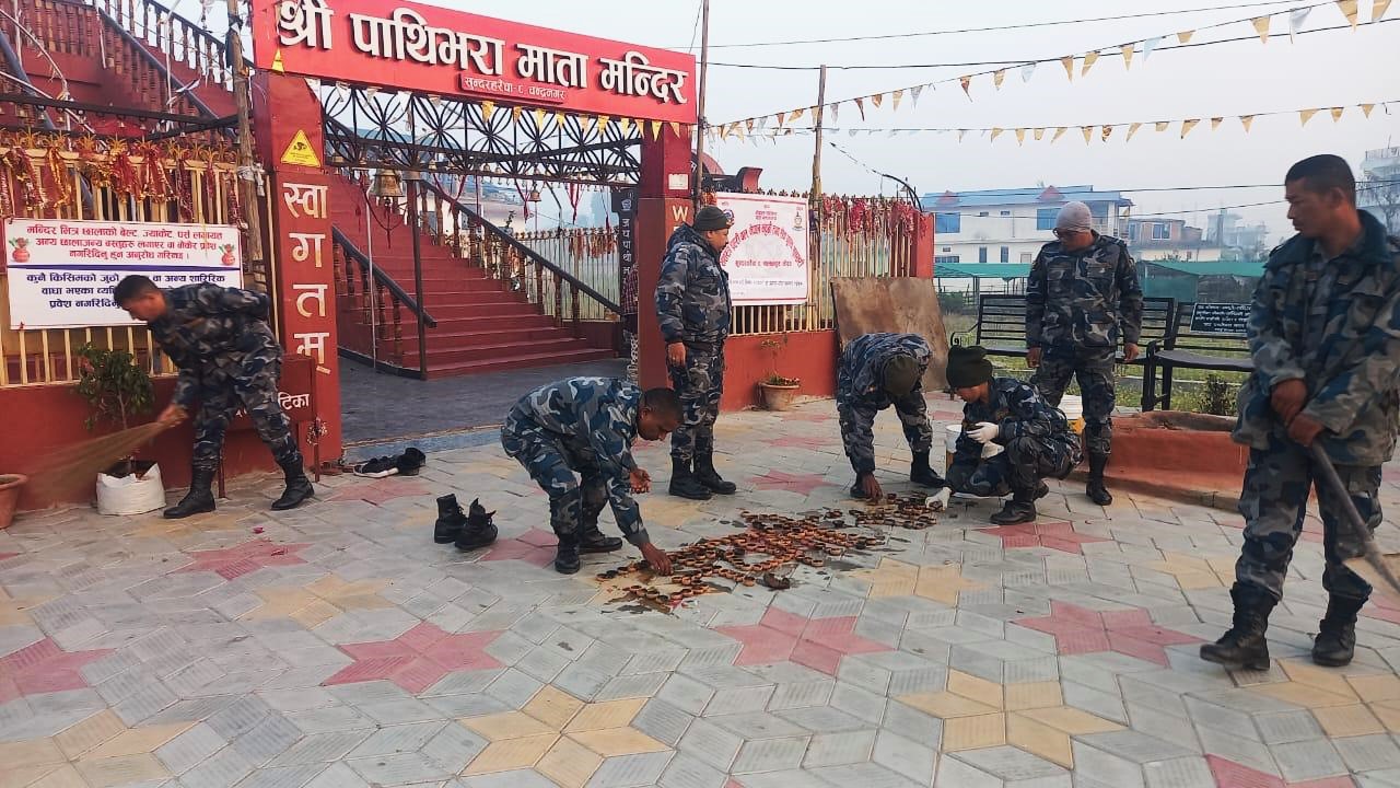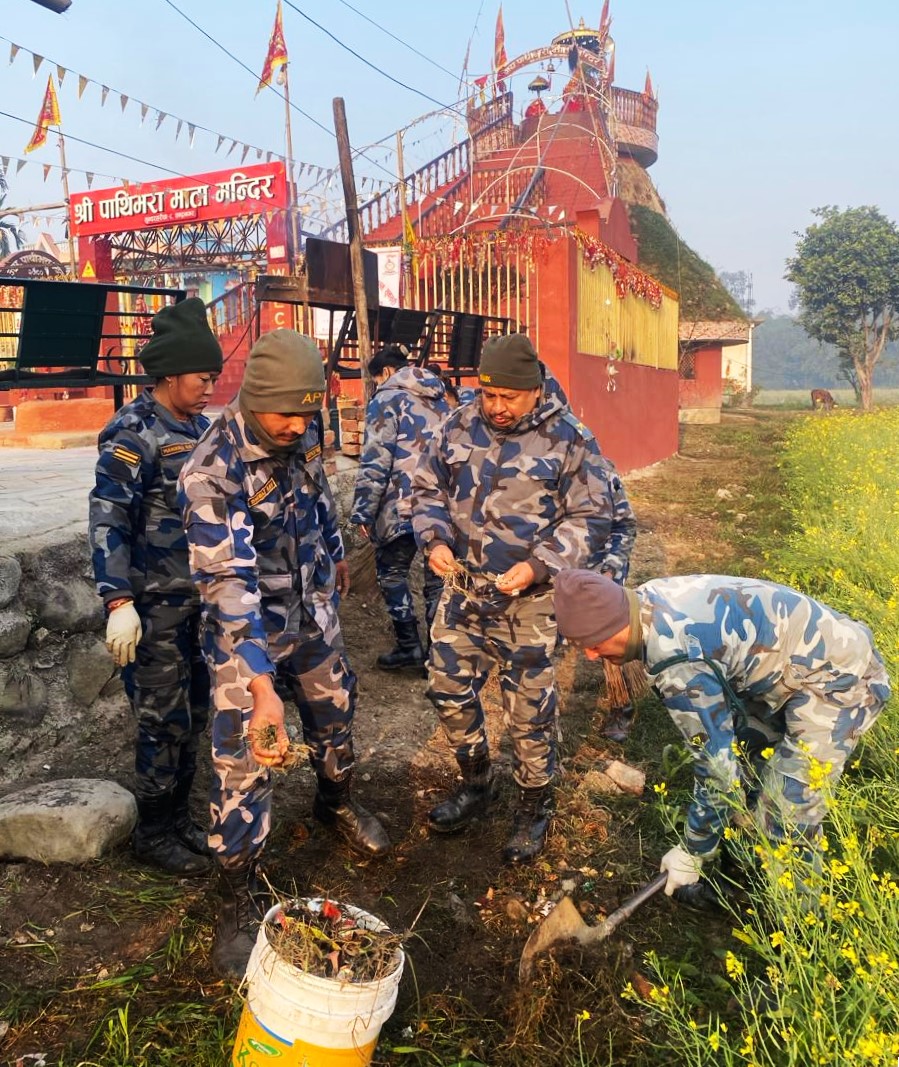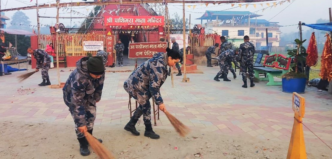 बेलबारी । सशस्त्र प्रहरी दिवसको अवसरमा सशस्त्र प्रहरी बल, नेपाल मद्धति तथा सेवा गुल्म सुनसरी सलकपुर, मोरङले सरसफाइ कार्यक्रम सम्पन्न गरेको छ । २३ औँ वार्षिक उत्सवमा सुन्दरहरैँचाको वडा नं.८ स्थित चन्द्रनगरमा रहेको पाथीभरा माता मन्दिरमा सरसफाइ गरेका हुन ।