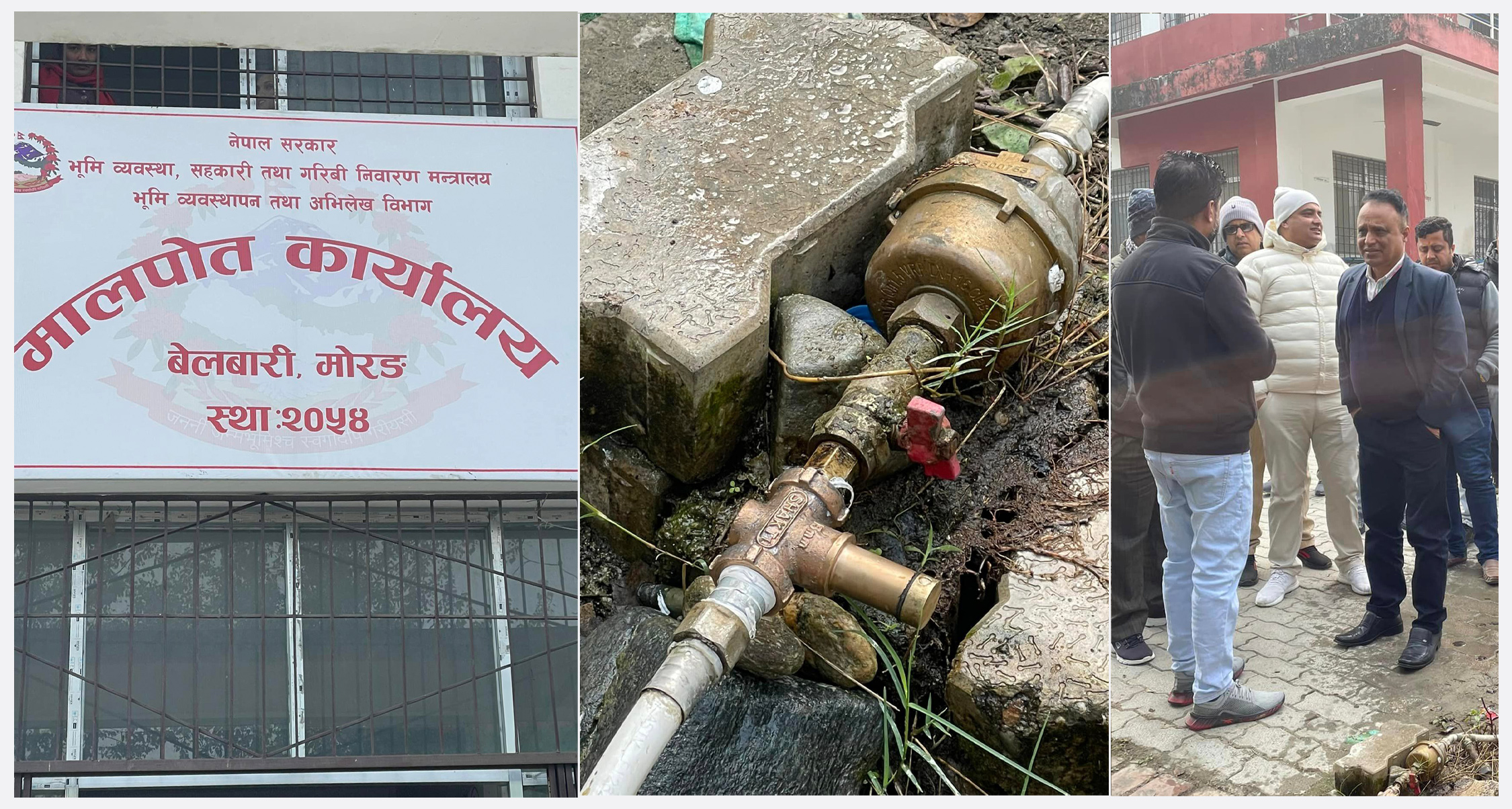 बेलबारी । खानेपानीको मासिक शुल्क नतिरे पछि मालपोत कार्यालय बेलबारीमा जडान गरिएको खानेपानी काटिएको छ । बेलबारी साना सहरी खानेपानी तथा सरसफाइ उपभोक्ता संस्थाले बेलबारी वडा नं. ३ मा रहेको मालपोत कार्यालयले २६ महिनाको शुल्क नतिरेको कारण खानेपानी कटौती गरेको हो ।
