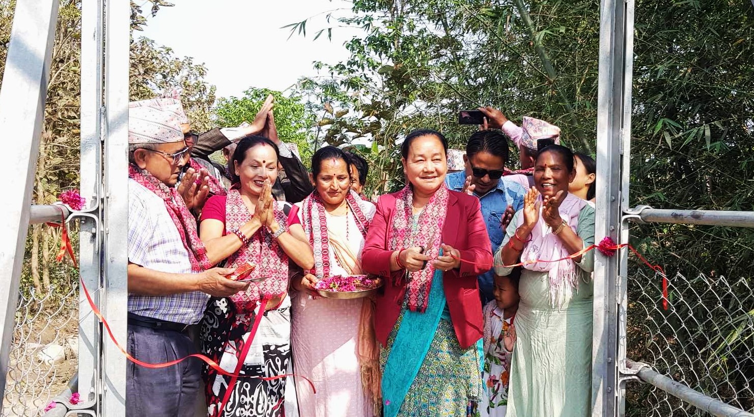 कानेपोखरी । मोरङको कानेपोखरी गाउँपालिका ३ मा ट्रस्ट पुल उद्घाटन भएको छ । शुक्रवार पालिका अध्यक्ष राजमती ईङ्गनामले कडिया खोला ट्रस्ट पुलको उद्घाटन गर्नुभएको हो ।
