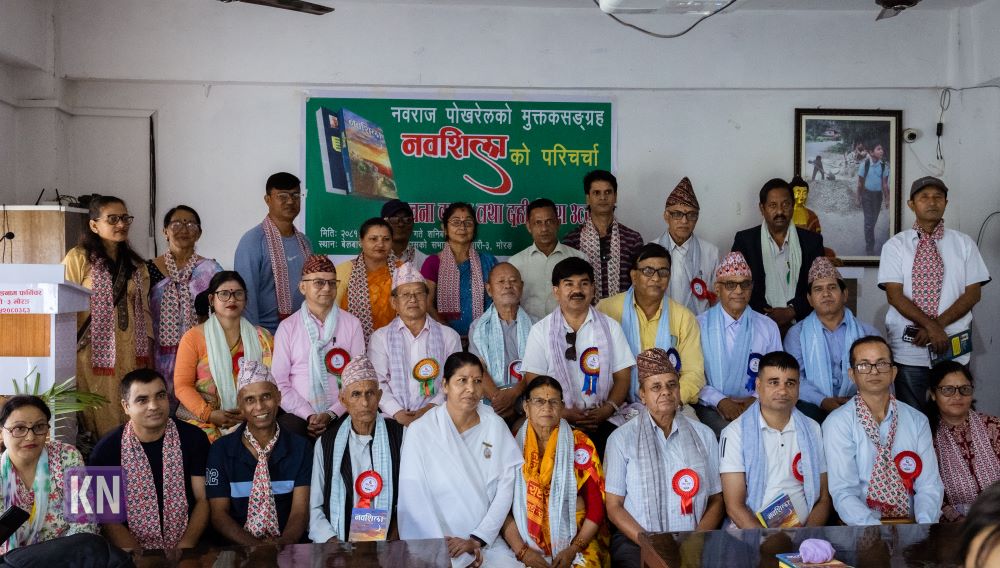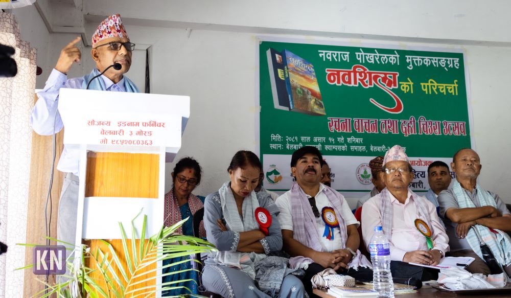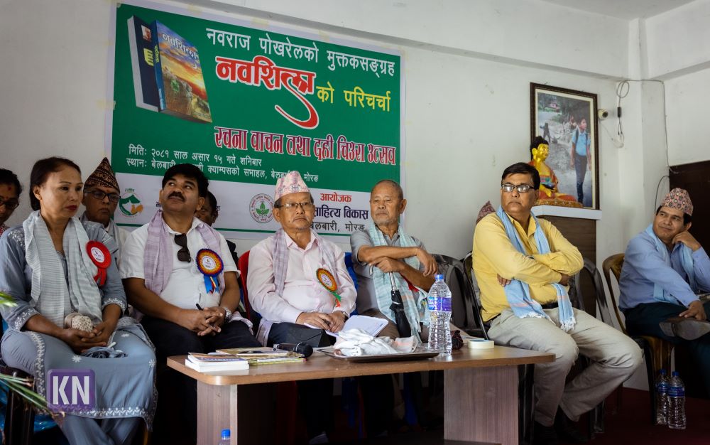 बेलबारी । नवराज पोखरेलको मुक्तकसङ्ग्रह नवशिलाको परिचर्चा रचना वाचन कार्यक्रम बेलबारी साहित्य विकास समितिको आयोजनामा सम्पन्न भएको छ । बेलबारी नगरपालिका वडा नं.३ स्थित सुन्दरशान्ती टोलमा अवस्थित बेलबारी बहुमुखी क्याम्पसको सभाहलमा शनिवार राष्ट्रिय धान दिवसको दिन सम्पन्न भएको हो ।