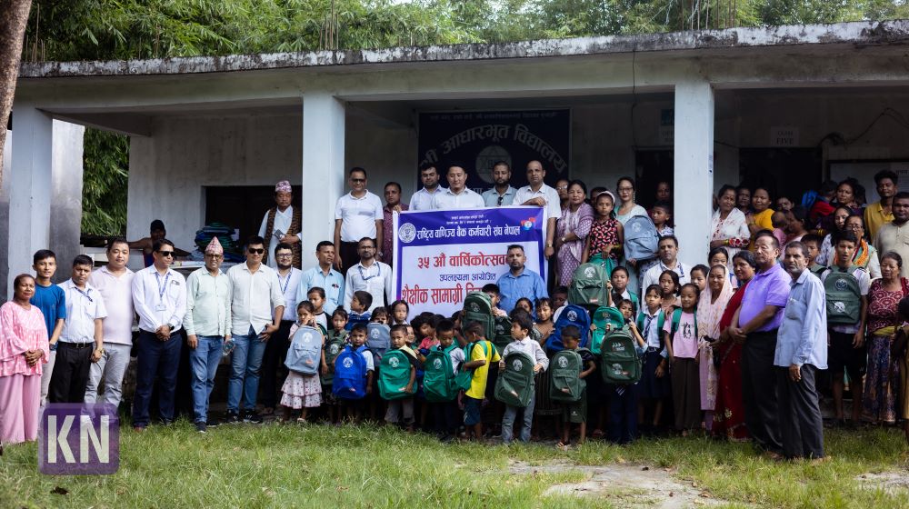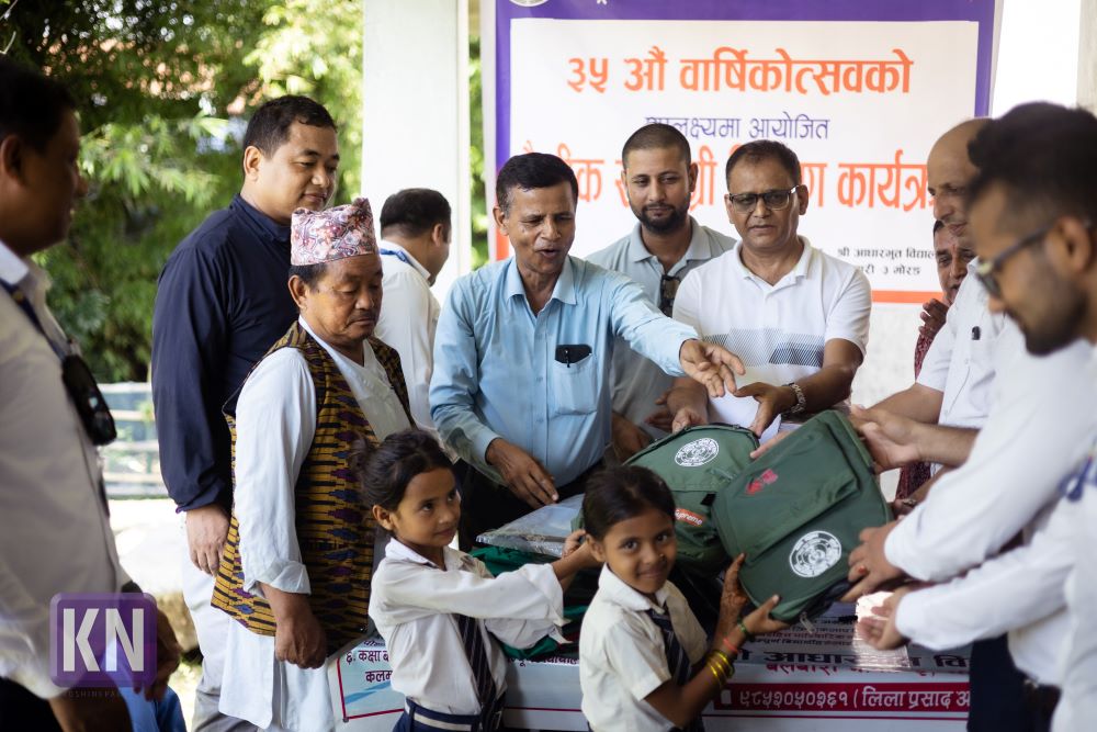 बेलबारी । राष्ट्रिय वाणिज्य बैँक कर्मचारी संघ नेपाल, कोशी प्रदेशले बेलबारी नगरपालिका वडा नं.३ मा रहेको श्री आधारभूत विद्यालयलाई शैक्षिक सामाग्री वितरण गरेको छ । संघको ३५ औँ वार्षिकोत्सवमा आइतबार विद्यालयलाई शैक्षिक सामाग्री वितरण गरेको हो ।
