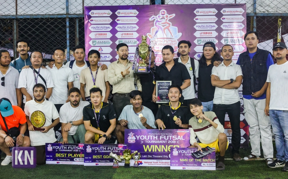 तृष्ना कुलुङ राई – सुन्दरहरैचा । राष्ट्रिय युवा सङ्घ नेपाल सुन्दरहरैँचाद्वारा आयोजित कोशी प्रदेश स्तरीय यूथ फुटसल टुर्नामेन्टको उपाधि यूथ फोर्स कोशी प्रदेशले हात पार्न सफल भएको छ । सुन्दरहरैँचा नगरपालिका वडा नं.१० स्थित विराटचोकमा शनिवार भएको फाइनल खेलमा ५–३ गोलको अन्तरले राष्ट्रिय युवा संघ नेपाल विराटनगरलाई पराजित गर्दै कोशीले उपाधि हात पारेको हो ।