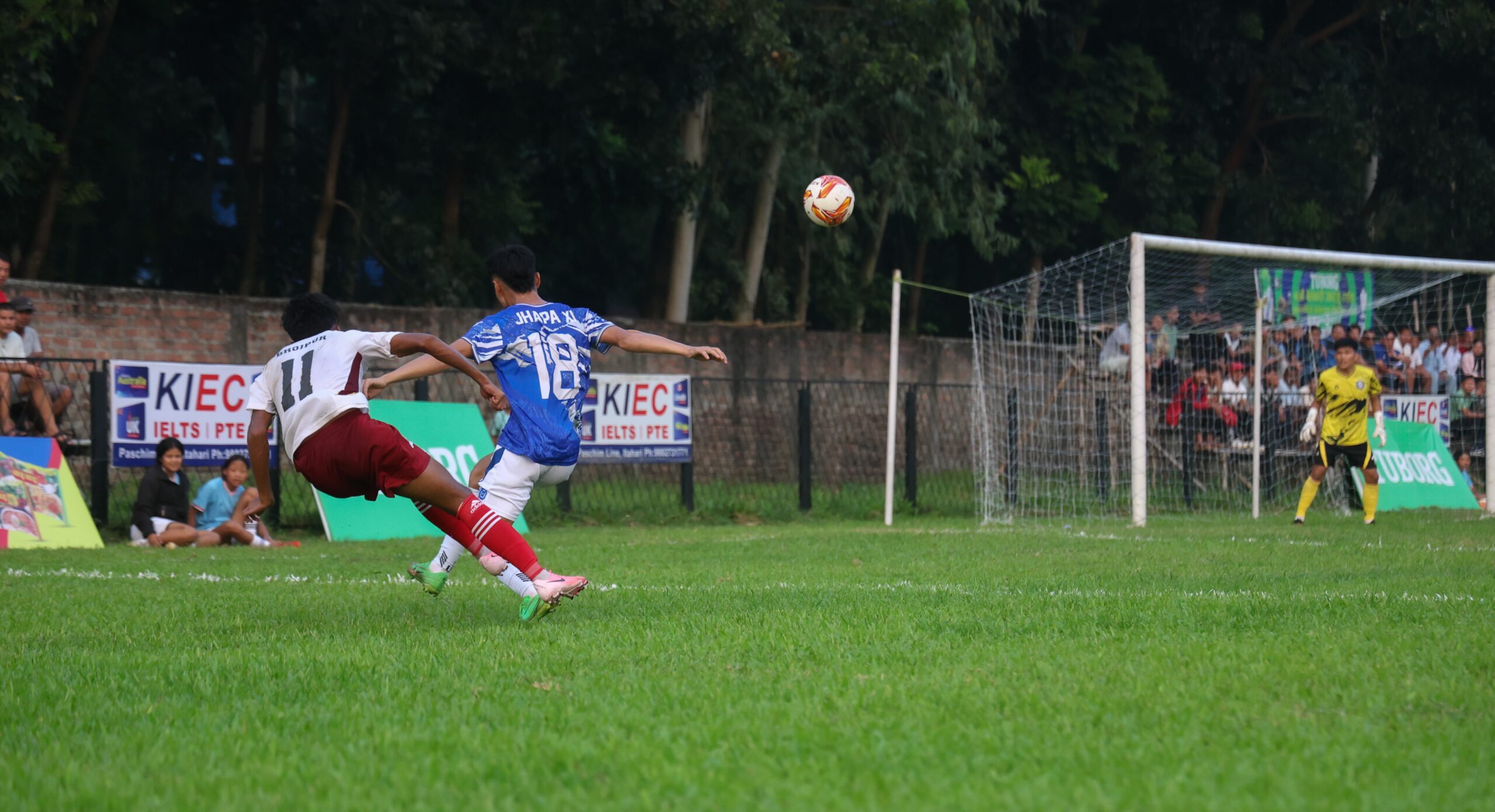 खेल सुरु भएको पहिलो मिनेटमै झापाका नीरज कार्कीले भोजपुर विरुद्ध गोल गरे । नीरजले पाेष्टमा प्रहार गरेको बल भोजपुरका खेलाडी सञ्जय लिम्बूले गाेललाइनबाट ब्याक पास गरेका थिए । तर, उक्त बललाई नीरजले नियन्त्रणमा लिई सिँधै गाेलपाेष्टकाे जाली चुमाए । मध्यान्तर अघि १-० ले अग्रता कायम गरेको झापाले ७५ ओं मिनेटमा १ गोल थप्यो ।