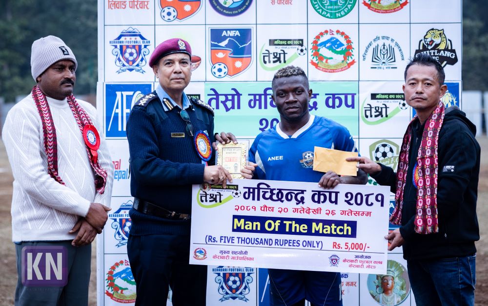 खेलको मेन अफ म्याच पानवारीका ग्लोरी नै घोषित भएका छन् । उनले नगद पुरस्कार रु.५ हजार प्राप्त गरेका छन् । भोली बिहीबार आयोजक टिम केराबारी फुटबल क्लब र चात्या सा फुटबल क्लब, दमकबिच भिडन्त हुने छ । विजेताले ट्रफी, मेडल, प्रमाणपत्रसहित रु.३ लाख नगद पुरस्कार र उपविजेताले ट्रफी, मेडल, प्रमाणपत्रसहित रु.१ लाख ५० हजार प्राप्त गर्ने छन् ।