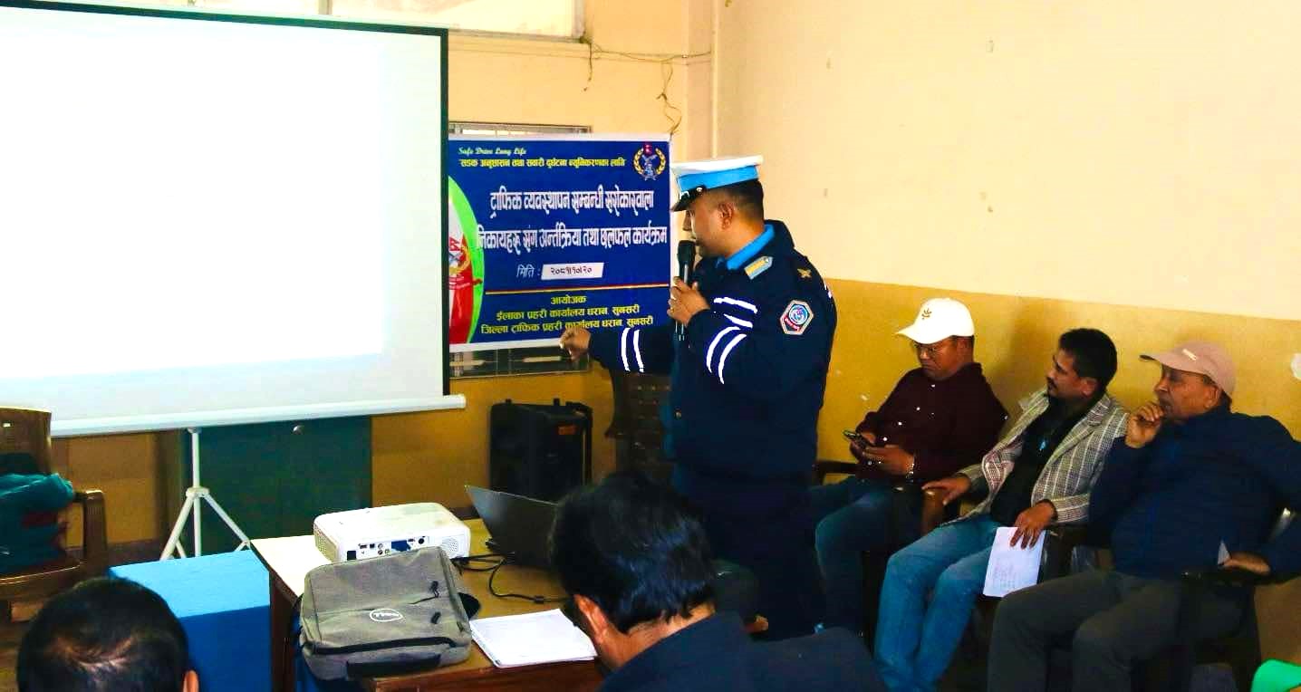 धरान । धरानका यातायात मजदुरहरूलाई आइतबार सडक दुर्घटना न्यूनीकरण सम्बन्धी प्रशिक्षण प्रदान गरिएको छ । सडक दुर्घटनामा ज्यान गुमाउने र कारागार जाने चालकहरूको संख्या बढिरहेकोले बन्दकाबीच सवारीका चालकहरूलाई सडक सुरक्षा सचेतना गराइएको हो ।