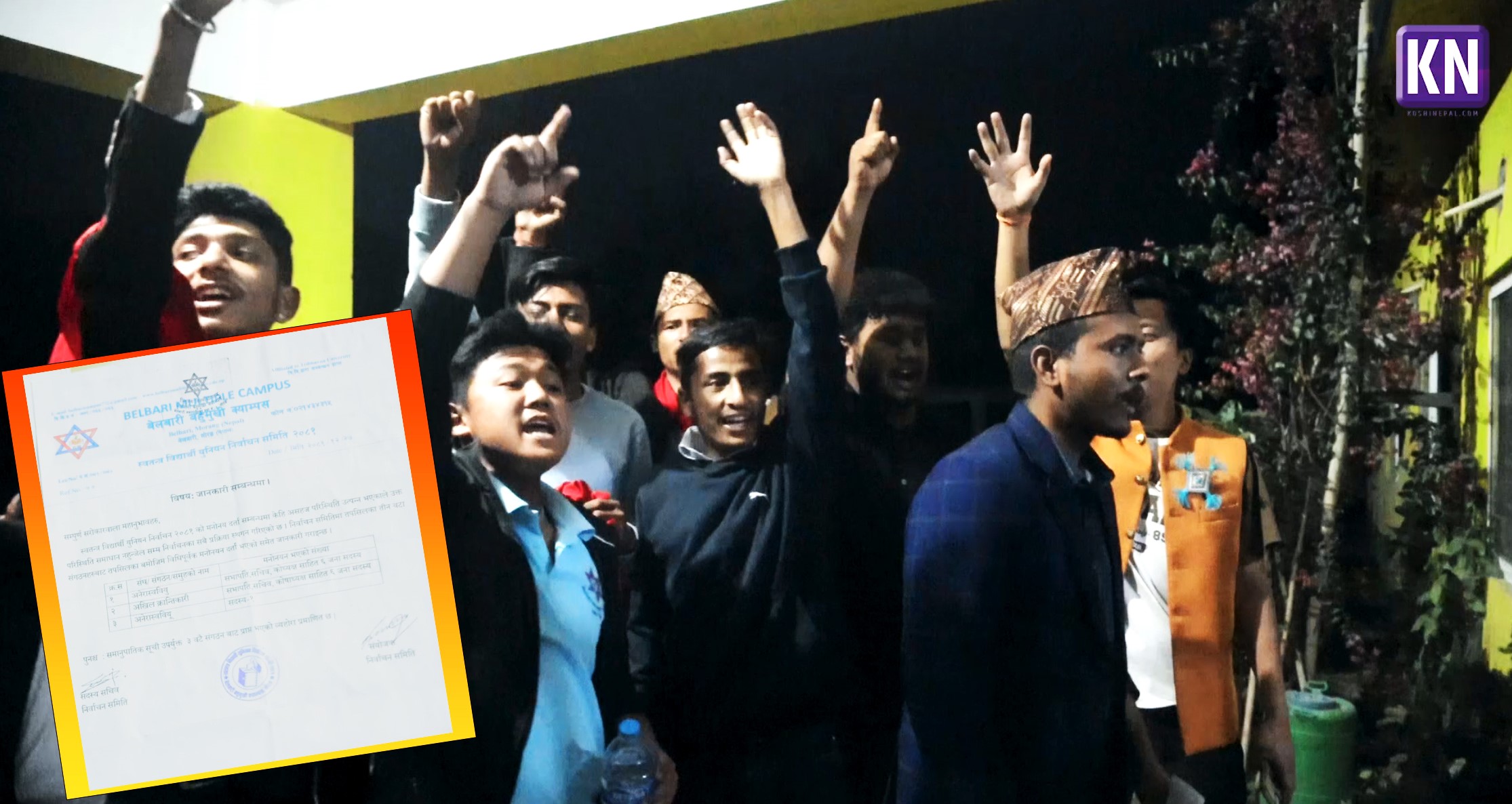 तर निर्वाचन समितिले ३ संगठनको नामावली सार्वजनिक गर्दै मनोनयन दर्ता सम्बन्धमा केही असहज परिस्थिति उत्पन्न भएकोले उक्त परिस्थिति समाधान नहुन्जेल सम्म निर्वाचनका सबै प्रक्रिया स्थगन गरिएको उल्लेख गर्दै जानकारी पत्र सार्वजनिक गरेको छ । नेवि सङ्घ विधि र प्रक्रियाबाट आफ्नै अन्तरविवादबाट बाहिरिँदा दर्ता भएको ति सङ्गठनलाई निर्वाचन समितिद्वारा सास्ती भएको विद्यार्थीहरूले बताए ।