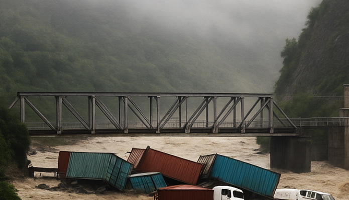 उक्त बाढीले नेपाल–चीन सीमा क्षेत्रको मितेरी पुल बगाएको छ भने भौतिक सम्पत्तिमा पनि ठुलो क्षति पुगेको छ। बाढीले २४ वटा कन्टेनर, ६ वटा ट्रक र ४२ वटा इभी गाडी बगाएको बताइएको छ। यस्तै, धुन्चे–टिमुरे सडक खण्डमा गम्भीर क्षति पुगेको छ भने रसुवागढी जलविद्युत् आयोजनाको ड्याम र भन्सार कार्यालय यार्डमा समेत क्षति पुगेको छ।
