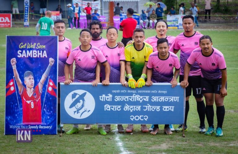 सुन्दरहरैँचा । मोरङको सुन्दरहरैँचामा जारी पाँचौँ अन्तर्राष्ट्रिय आमन्त्रण विराट भेट्रान गोल्ड कप २०८२ को उपाधिका लागि भारतको कुर्सियोङ लेजेन्ड्स र झापाको दुधे भेट्रानबीच प्रतिस्पर्धा हुने भएको छ । सुन्दरहरैँचा नगरपालिका-१० स्थित सुकुना खेल मैदानमा विराट भेट्रान क्लबको आयोजनामा चैत २१ गतेदेखि सुरु भएको प्रतियोगिता अन्तर्गत दुवै टोलीले सेमिफाइनल पार गर्दै उपाधि नजिक पुगेका हुन् । फाइनल खेल यही शनिवार चैत २८ गते हुने आयोजकले जनाएको छ ।