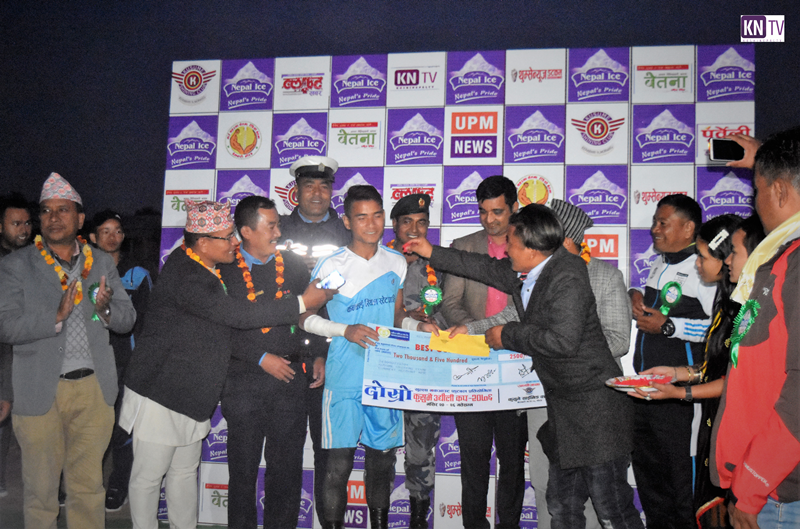वेस्ट गोल किपर रोयलका खेलाडी उत्तम पोखरेल, धेरै गोलकर्ता एपियफका आकाश राई र कृष्ण थापा घोषित भएका छन् । उनीहरूले प्रति व्यक्ति नगद पुरस्कार रु.२ हजार ५ सय प्राप्त गरेका छन् । म्यान अफ द सिरिजमा एपियफका रविन राई घोषित भएका छन् । उनले नगद पुरस्कार रु.५ हजार प्राप्त गरेका छन् ।