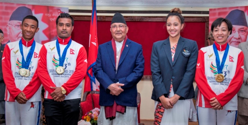 काठमाडौँ ,२७ मङ्सिर । नेपालमा भएको १३ औँ दक्षिण एसियाली खेलकुद (साग) का पदक विजेता खेलाडीहरूको नागरिक अभिनन्दनमा पानीले प्रभावित भएको छ ।