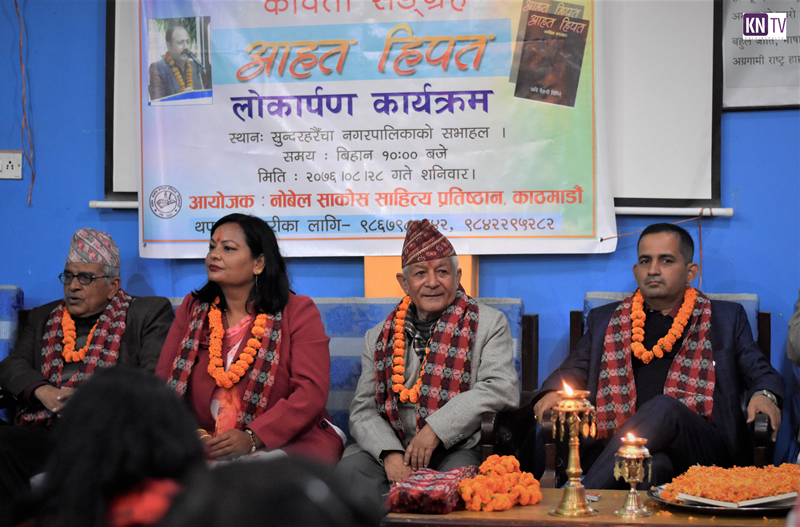 मोरङ, २८ मङ्सिर / सुन्दरहरैचामा कवि छवि वैरागी घिमिरेको कविता सङ्ग्रह “आहत हिपत” को लोकार्पण भएको छ । शनिवार सुन्दरहरैचा नगरपालिका कार्यालयको सभाहलमा नोबेल साकोस साहित्य प्रतिष्ठान, काठमाडौँको आयोजनामा लोकार्पण कार्यक्रम सम्पन्न भएको हो ।