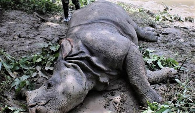 अन्दाजी २० वर्षको गैँडा एक्जाभेटर लगाएर गैँडा बाहिर निकालिएको छ । गैँडाको खाग र खुरहरू सुरक्षित छन् भाले गैँडाले लखेटेर भाग्न खोज्दा गैँडा दलदलमा भासिएको हुनसक्ने सहायक संरक्षण अधिकृत रमेश यादवले बताएका छन् । जाडोयाम गैँडा प्रजननको समयका रूपमा लिइन्छ ।
