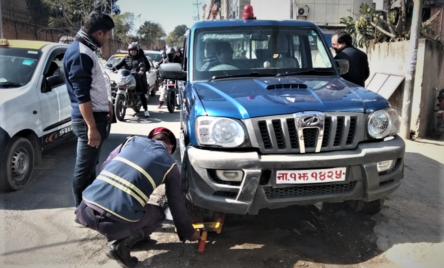 प्रहरीको गाडीमा लक लगाइएको महानगरीय ट्राफिक प्रहरी महाशाखाले बताएको छ ।
