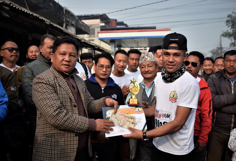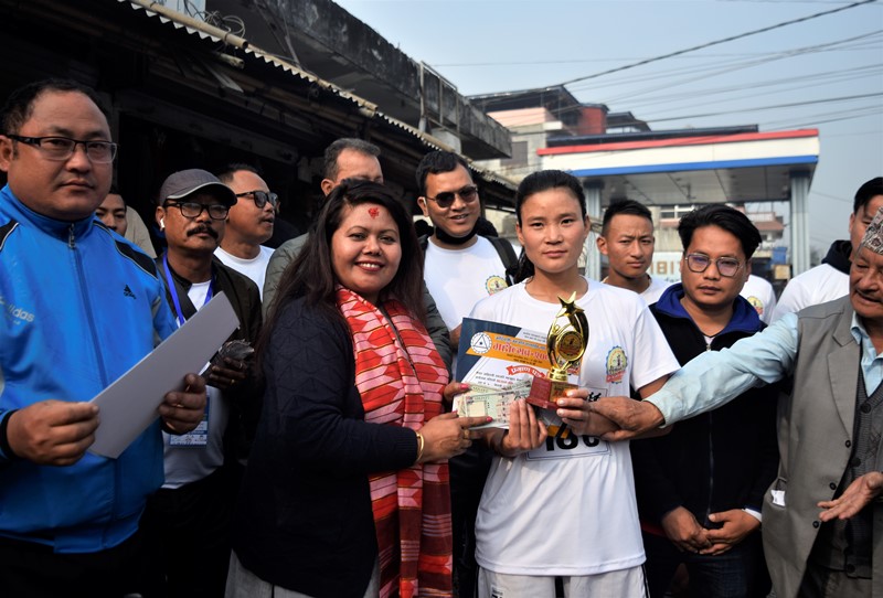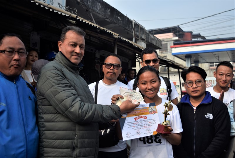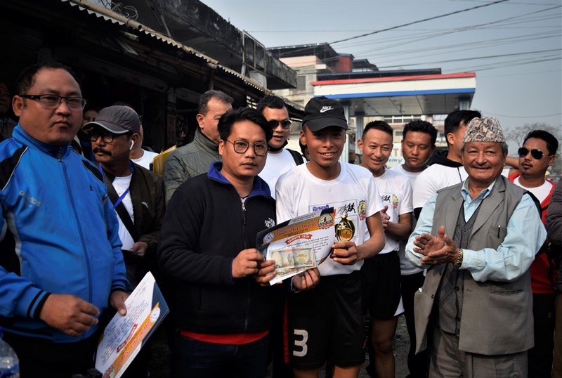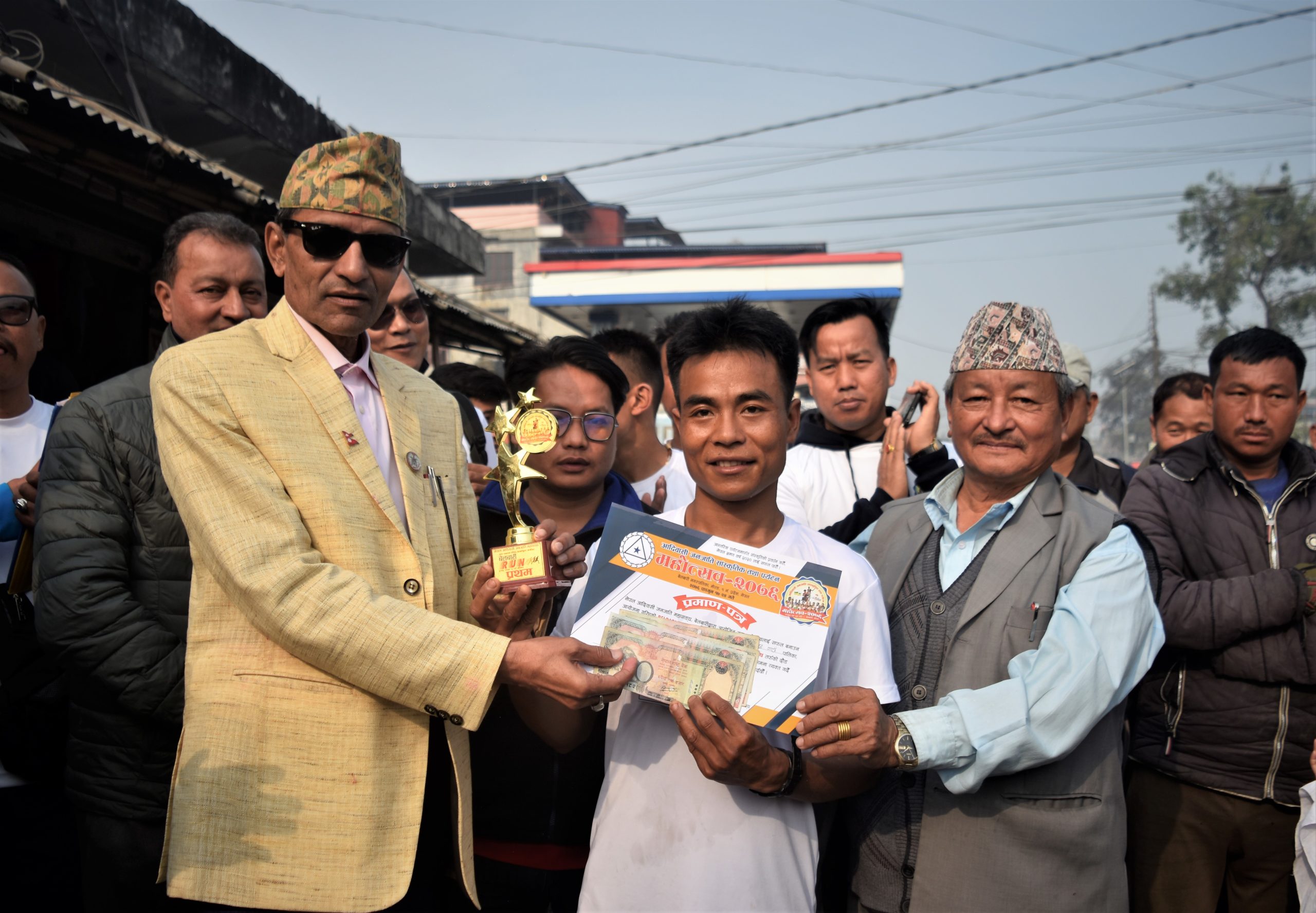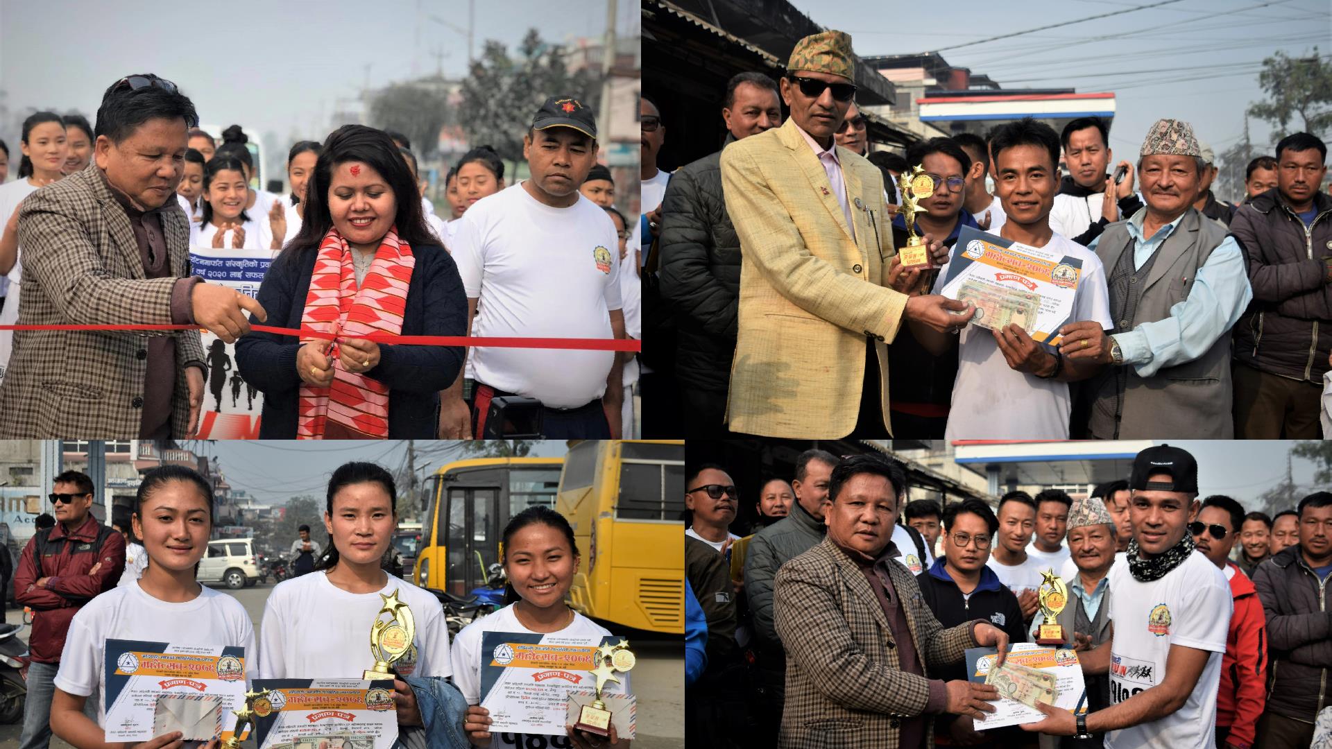 प्रथम हुनेले नगद पुरस्कार रु.५ हजार, दोस्रोले रु.३ हजार, तेस्रोले रु.२ हजार सहित ट्रफी र प्रमाणपत्र प्रदान गरेको थिए । पुरुष दौड तर्फ भाउन्ने चौक देखि फूलबारी पेट्रोलपम्प बेलवारी सम्म रहेको थियो भने महिला तर्फ विराटचौकदेखि फूलबारी पेट्रोलपम्प बेलवारी सम्म रहेको थियो ।