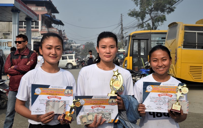 महिला तर्फको दौडमा सुशीला राईले १५.६ मिनेट दौड पुरा गरेर प्रथम भएकी छन् भने संगीता तामाङले १५.६ मिनेटमा र भावना श्रेष्ठले १५.३६ मिनेटमा दौड पुरा गरेर क्रमशः दोस्रो र तेस्रो भएकी छन् ।