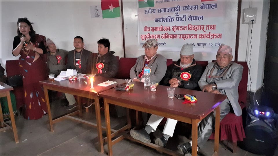 सखुवासभा ,१३ फागुन । सङ्घीय समाजवादी फोरम नेपाल र नयाँशत्ति पार्टी नेपाल बिच समायोजन भएपछि कमानसेन राईको अध्यक्षमा ६१ कार्यसमिति गठन भएको छ ।