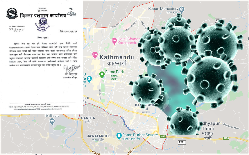 कोरोना (कोभिड–१९) भाइरसले विश्वका ७० बढी देशमा आतङ्क सिर्जना गरिसकेपछि नेपालमा पनि यो रोग भित्रिन नदिनका लागि सुरक्षाका उपायहरू अपनाउन थालिएको छ । काठमाडौँका प्रमुख जिल्ला अधिकारी जनकराज दाहालले कोरोना सङ्क्रमणको खतरालाई ध्यान दिँदै अर्को निर्णय नहुञ्जेलसम्मका लागि काठमाडौँका बासिन्दालाई अत्यावश्यक काममा बाहेक घर बाहिर ननिस्कन आग्रह गरिएको बताएका छन् ।