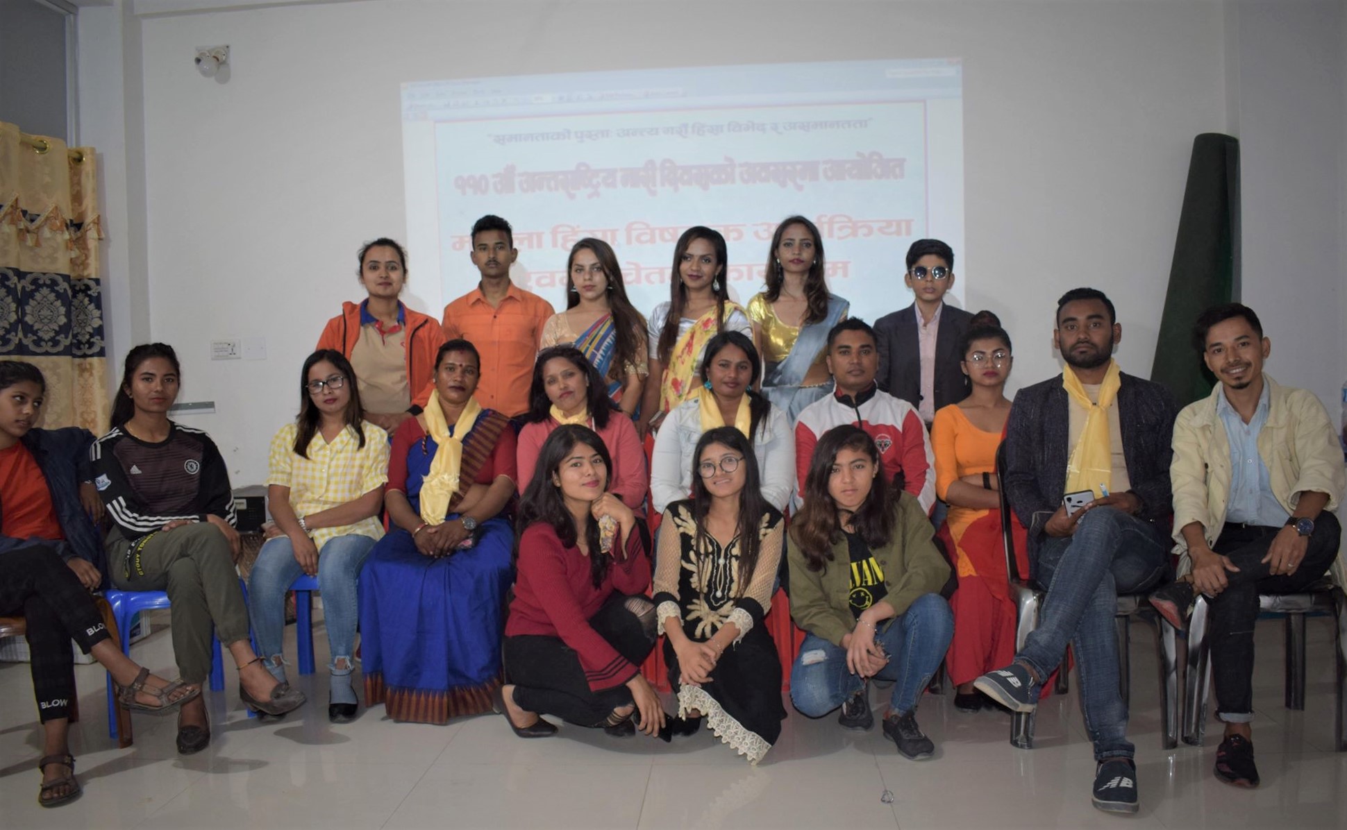 सुन्दरहरैचा भरका युवा तथा महिलाहरूको उपस्थितिमा सम्पन्न भएको कार्यक्रम माइक्रो एकेडेमीको हल बिराटचोकमा सञ्चालन भएको हो । प्रत्येक वर्ष मार्च ८ लाई विभिन्न कार्यक्रम गरी अन्तर्राष्ट्रिय नारी दिवसको रूपमा मनाउँदै आइएको छ ।