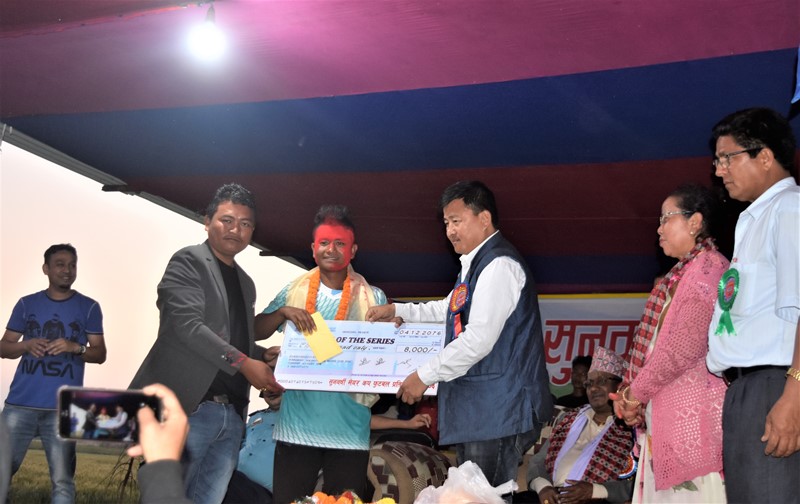 विजेता टिमले रु.१ लाख २१ हजार र उपविजेताले रु.६५ हजार नगद पुरस्कार सहित ट्रफी, मेडल प्राप्त गरेका छन् । बेलवारी ‘बी’ ले सुनवर्षी ‘ए’ लाई पहिलो सेमिफाइनलमा हराउँदै फाइनलमा प्रवेश गरेको थियो भने कानेपोखरीले अन्तिम सेमिफाइनलमा सुनवर्षी ‘बि’ लाई हराउँदै फाइनल प्रवेश गरेको थियो ।