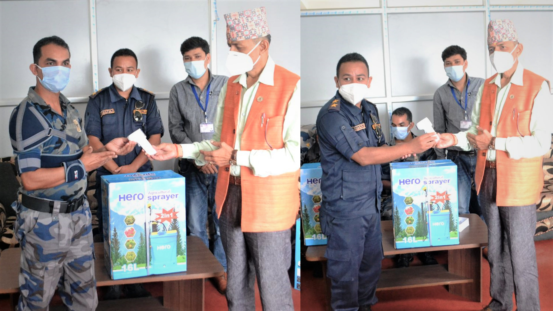 बेलबारी नगरपालिकाद्वारा सुरक्षा निकायलाई थर्मगन र स्प्रेमेसिन हस्तान्तरण