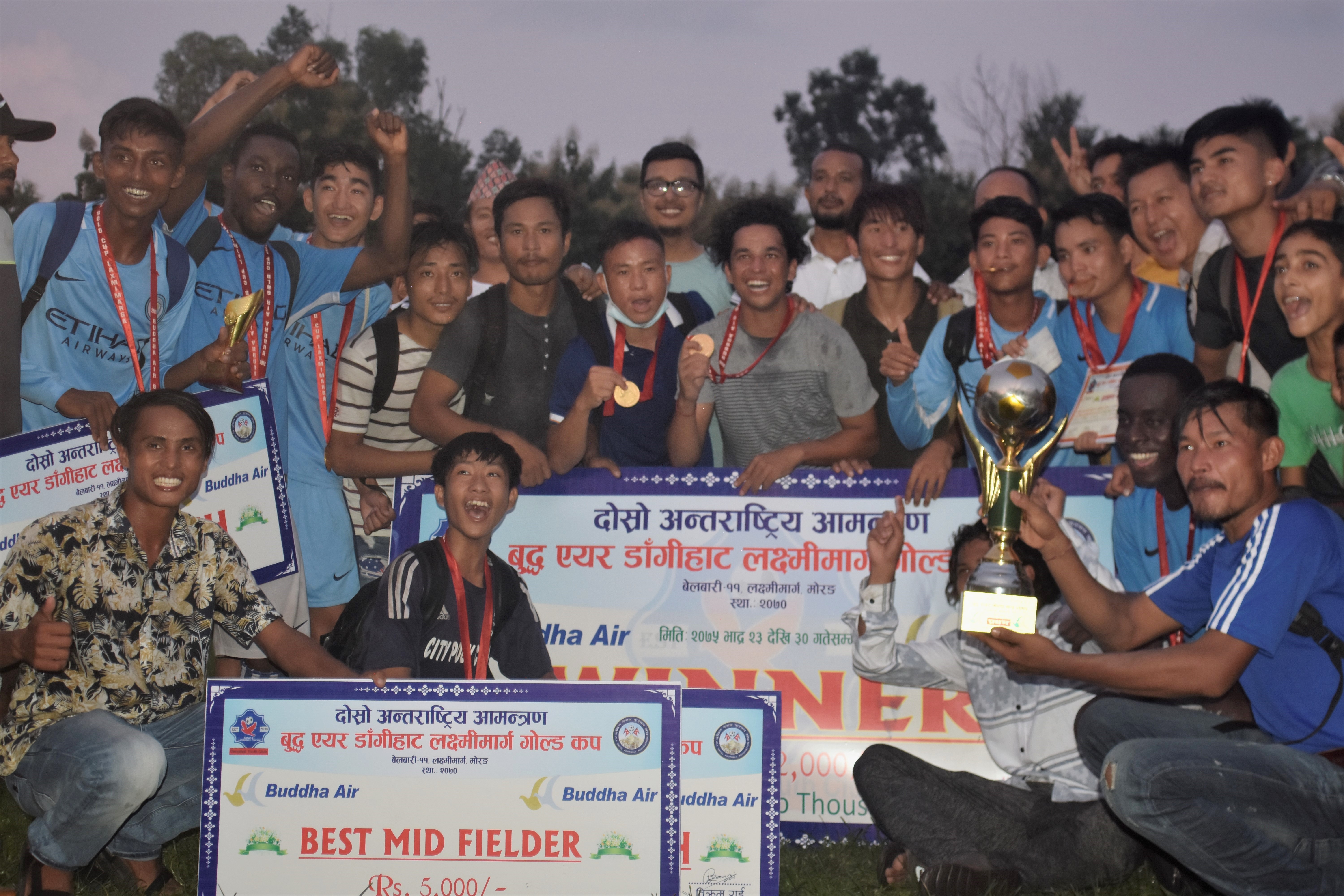 शनिवारको खेलको म्यान अफ दी म्याच मोरङका जीवन धामी घोषित भए । गोल्ड कप प्रतियोगिताको म्यान अफ दी सिरिज मोरङका विवेक पौडेलले १० हजार रुपैयाँ नगद पुरस्कार प्राप्त गरे । मोरङका किशोर गिरी उत्कृष्ट गोलरक्षक बने । सर्वाधिक गोल कर्ता र उत्कृष्ट स्ट्राइकरको उपाधि कर्ण लिम्बुले प्राप्त गरे । लिम्बुले प्रतियोगिता भर चार गोल गरे । वेस्ट डिफेन्सको उपाधि मोरङका प्रवेश दनुवारले पाए । उदयमान खेलाडी आयोजक डाँगीहाट गोल्डकपका मनिष राई र मिडफिल्डर मोरङकै संजोग राई घोषित भए । उत्कृष्ट प्रशिक्षक मोरङका सञ्जीव बुढाथोकी बने ।