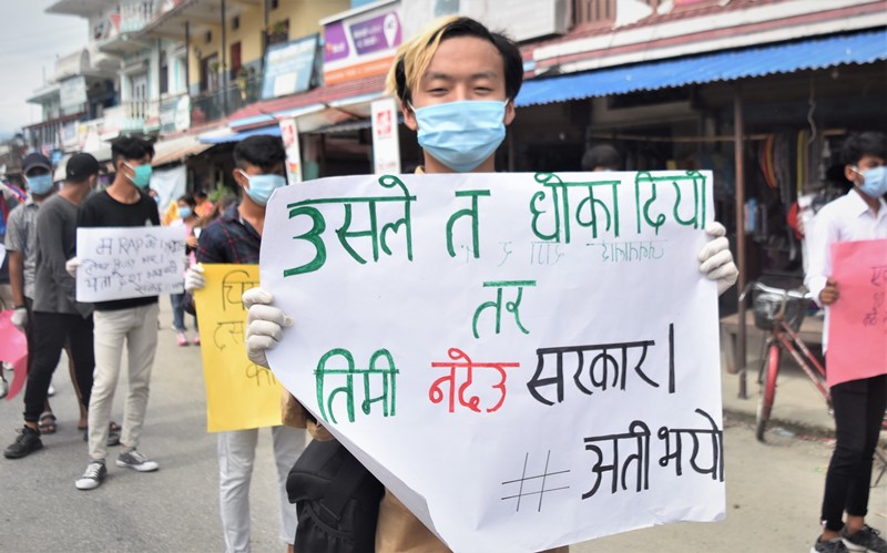 सुन्दरहरैचा, ३२ जेठ । सरकार विरुद्ध सुन्दरहरैचामा विरोध प्रदर्शनी भएको छ । कोरोनाको महामारीमा सरकारले जनतालाई सुरक्षा दिन नसकेको भन्दै युवाहरूले विरोध प्रदर्शनी गरेका हुन ।