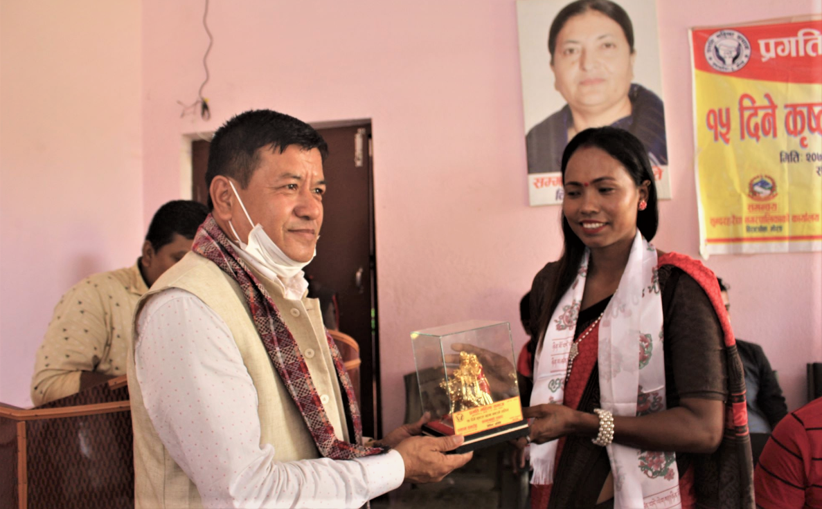 तालिममा सहभागीहरूलाई प्रमुख अतिथि रायमाझी, विशिष्ट अतिथि तबदार र उपप्रमुख तामाङ लगायतले प्रमाणपत्र प्रदान गरेका छन । तालिममा सहभागी भएकामध्ये कृषि लिम्बू र सङ्गीता पोखरेललाई उत्कृष्ट घोषित गरी पुरस्कृत समेत गरिएको थियो ।